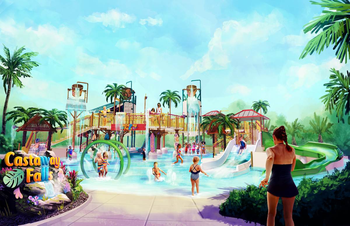 The neighboring water park, Adventure Island, will be receiving a new addition for the fourth straight year – Castaway Falls, a new family water play area. Concept art for this new addition was also released.