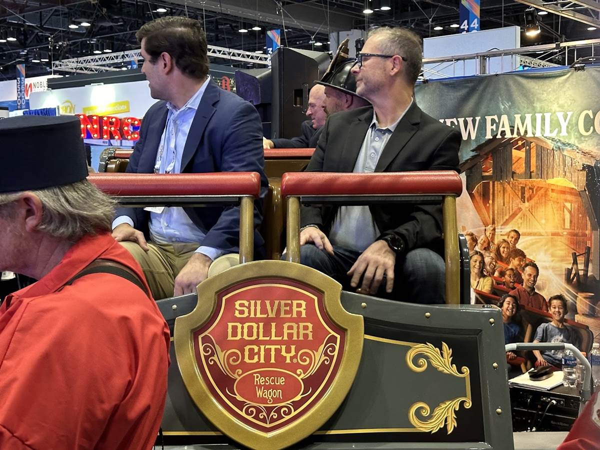 At this weekend’s annual IAAPA convention, Silver Dollar City and Rocky Mountain Construction unveiled the new vehicle for their Fire In The Hole family coaster.