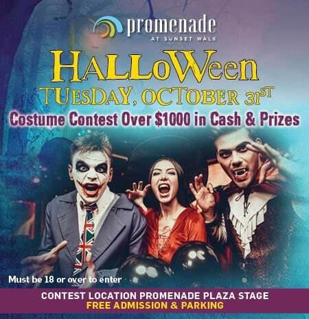 - Join the Promenade at Sunset Walk Halloween Costume Contest at the Promenade Plaza Stage from 5 to 10 PM.