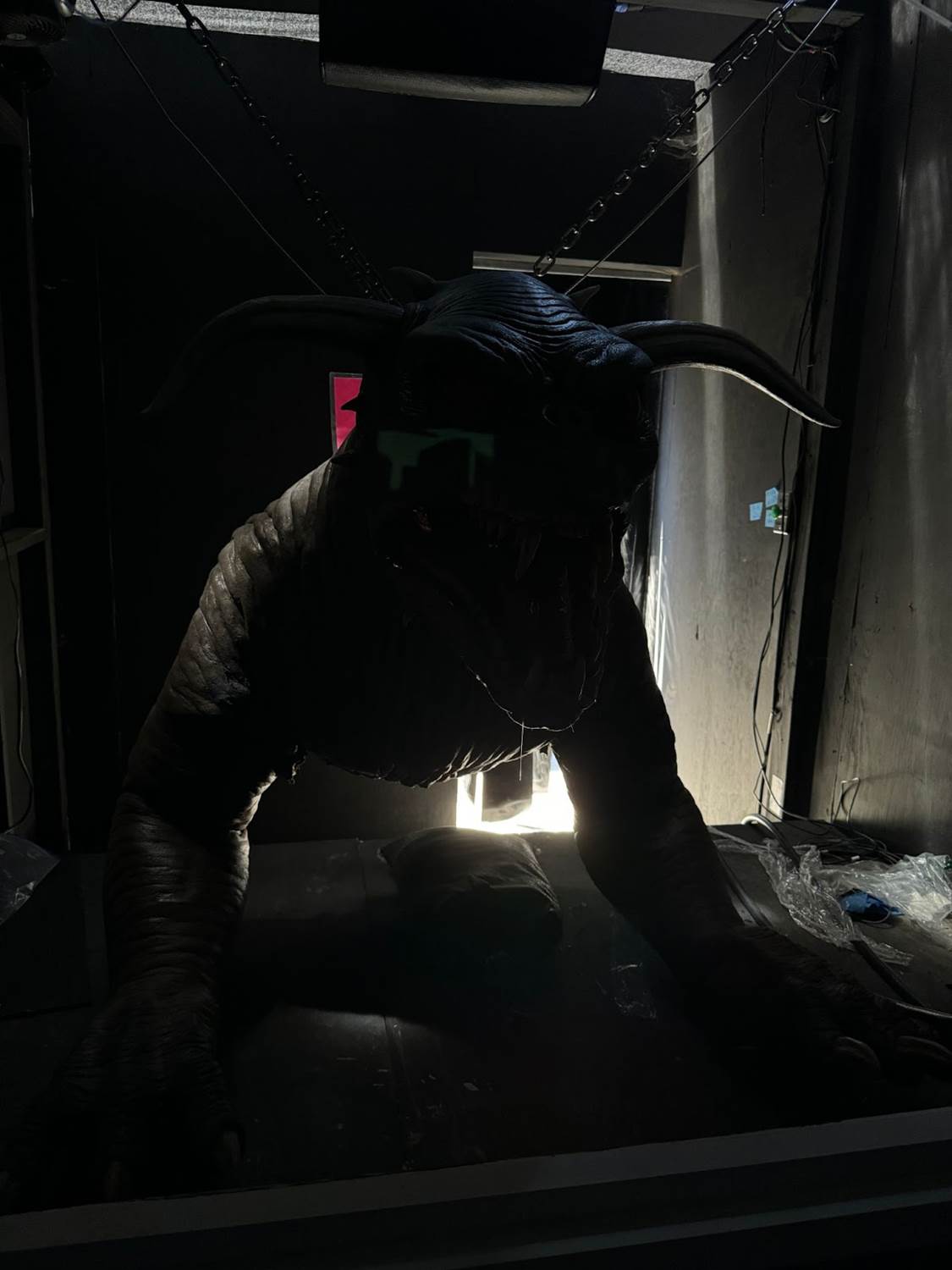 “But he comes up out of that junk pile and he blasts you– he slimes you [with] compressed air and water and then we get to the final scene. Baraka is a stilt-walker. [He] comes out, [and] Phoebe blasts him with the Proton Pack. Nadeem uses the orb [in] his role as the Firemaster, and a combination of fiber optics, LEDs, [and] projection make that flame effect. You get to see the finale moment [from] the film, but there's one last Slimer on the way out. That's kind of a hidden bonus to slime you one final time before you get to the exit. The new film I think leaned in a little bit more on the scare factor with Garraka and some of the other characters, so it did part of that work for us. But I think we've pretty much accepted that these types of houses are comedy-horror, and it's just a different flavor. And I think that when you look at how we curate the whole lineup, we try to do that every year. We try to put a lot of variety into it. As we put it together, we try to create it so that there's a variety for everybody."