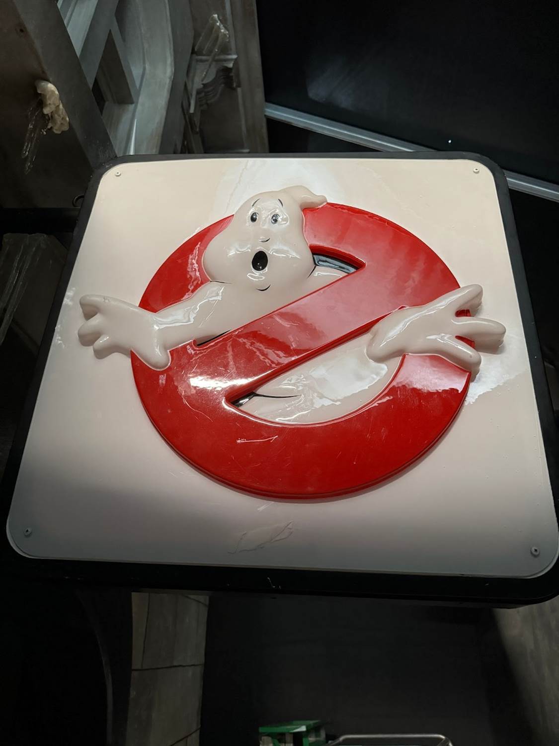 “What we did is we got the 3D file of the ECTO-1 and then the body is actually really lightweight. It's all cut out with robots, basically, and then it's on a big rig. Then we sourced all the original Cadillac parts, so the grill, all of the hardware, the mirrors, all of that are actually 1959 Cadillac parts. But the body itself is carved out of foam and then hard-coated and given an automotive finish. In this scene, Janine [Melnitz and] Winston [Zeddemore] are here, the ECTO-1 gets possessed, and the whole thing tracks up so it comes out sirens blaring and then reverses and goes back behind the wall. Janine's in front of that column when you come in and Winston's over here and they're [both] in their Ghostbusters uniforms. They're all ready for battle, and then Trevor [Spengler] is here– he blasts the proton pack. You see it chase across the wall [and] Slimer comes up from that [pile of trash]. We have to finish it with the candy wrappers and all that stuff and this is all. It's funny– up until yesterday, there was a sign here and it was like, ‘Please do not throw away the trash and please do not add to the prop trash. It's supposed to be here.’"