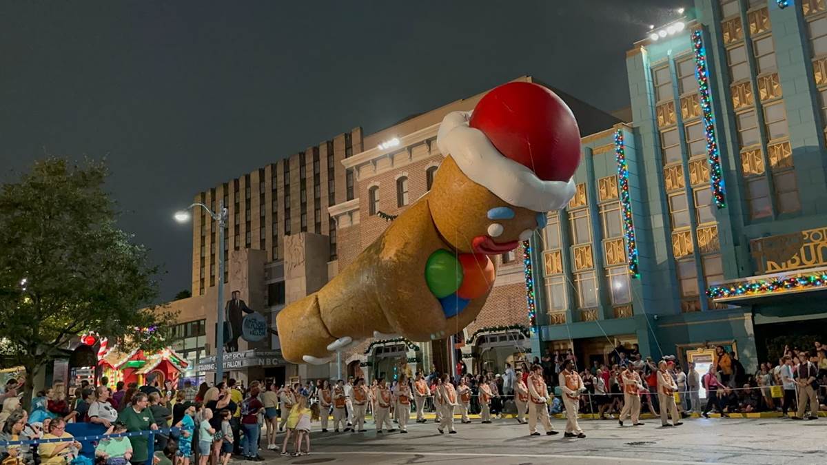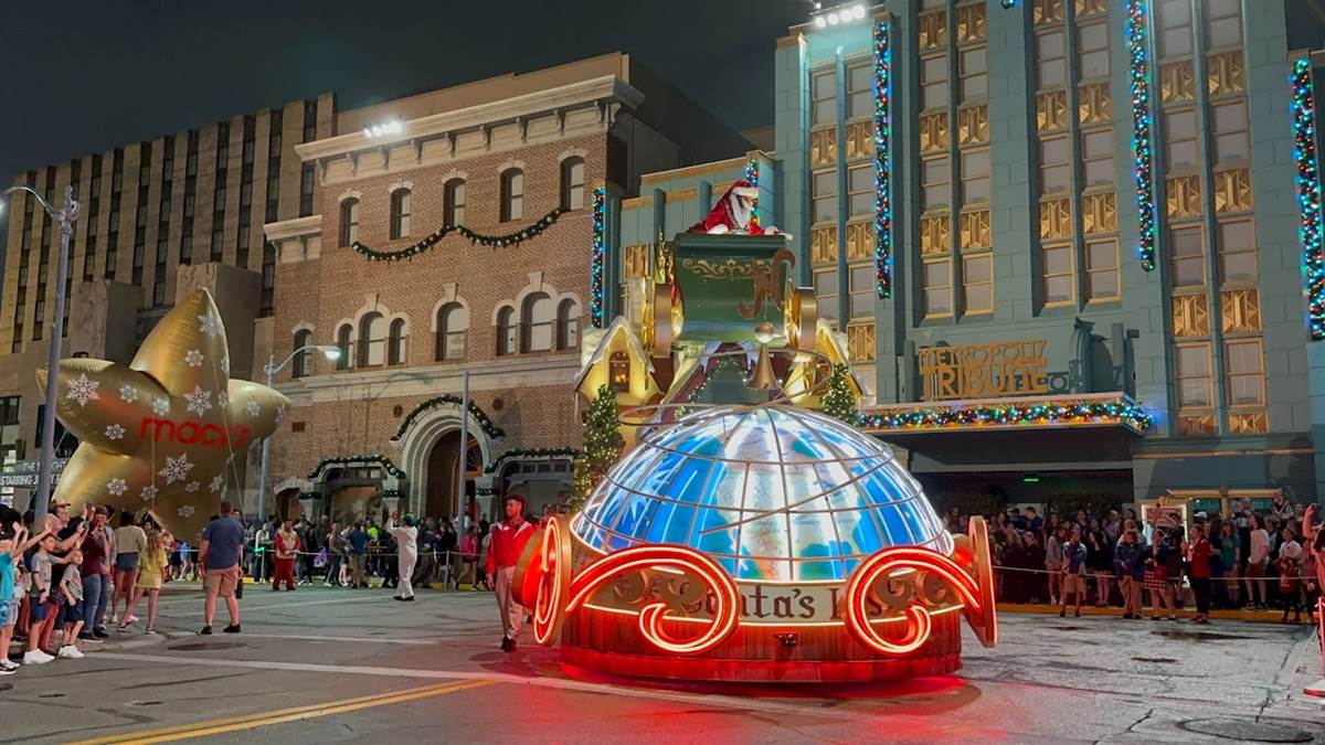 - These beloved stories come to life as larger-than-life balloons, colorful holiday floats and hundreds of jolly performers embark on a picturesque journey that culminates in a stunning finale including a special appearance by Santa Claus and the lighting of the magnificent 80-foot Christmas tree.