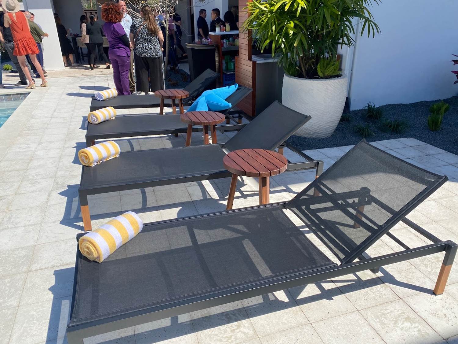 Each house features its own pool and a spacious backyard, with plenty of lounging options.
