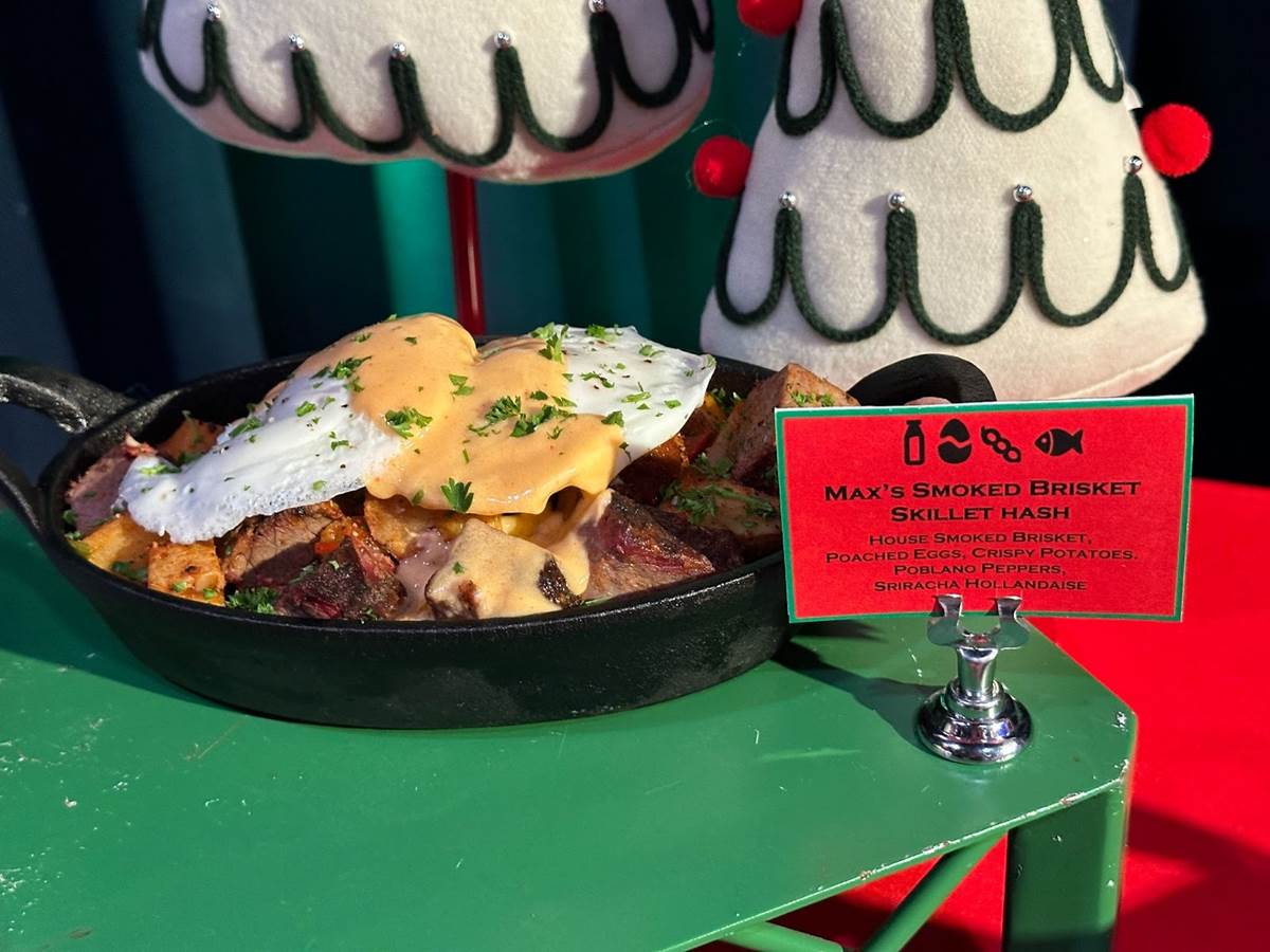 - There are also some savory holiday options like the VBLT sandwich and Max’s smoked brisket skillet hash.