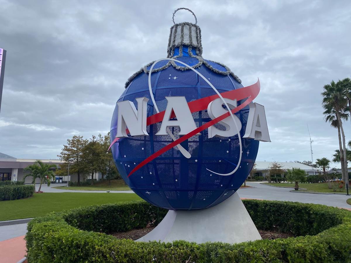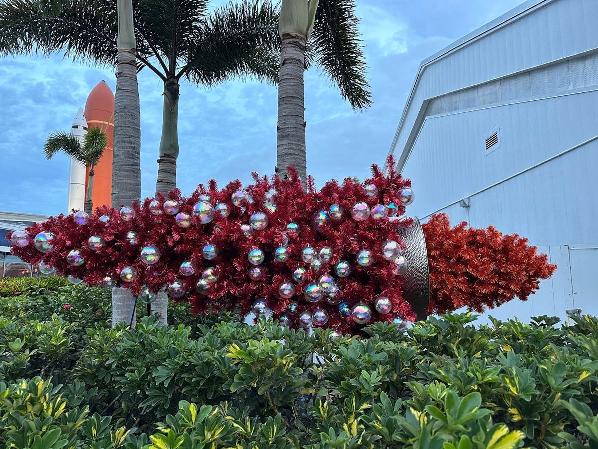 Holidays in Space has returned to the Kennedy Space Center Visitor Complex for 2023, and we were invited out to check out some of the festivities. The holiday fun starts before you even enter the complex, as the NASA globe is turned into an ornament for the festive season.