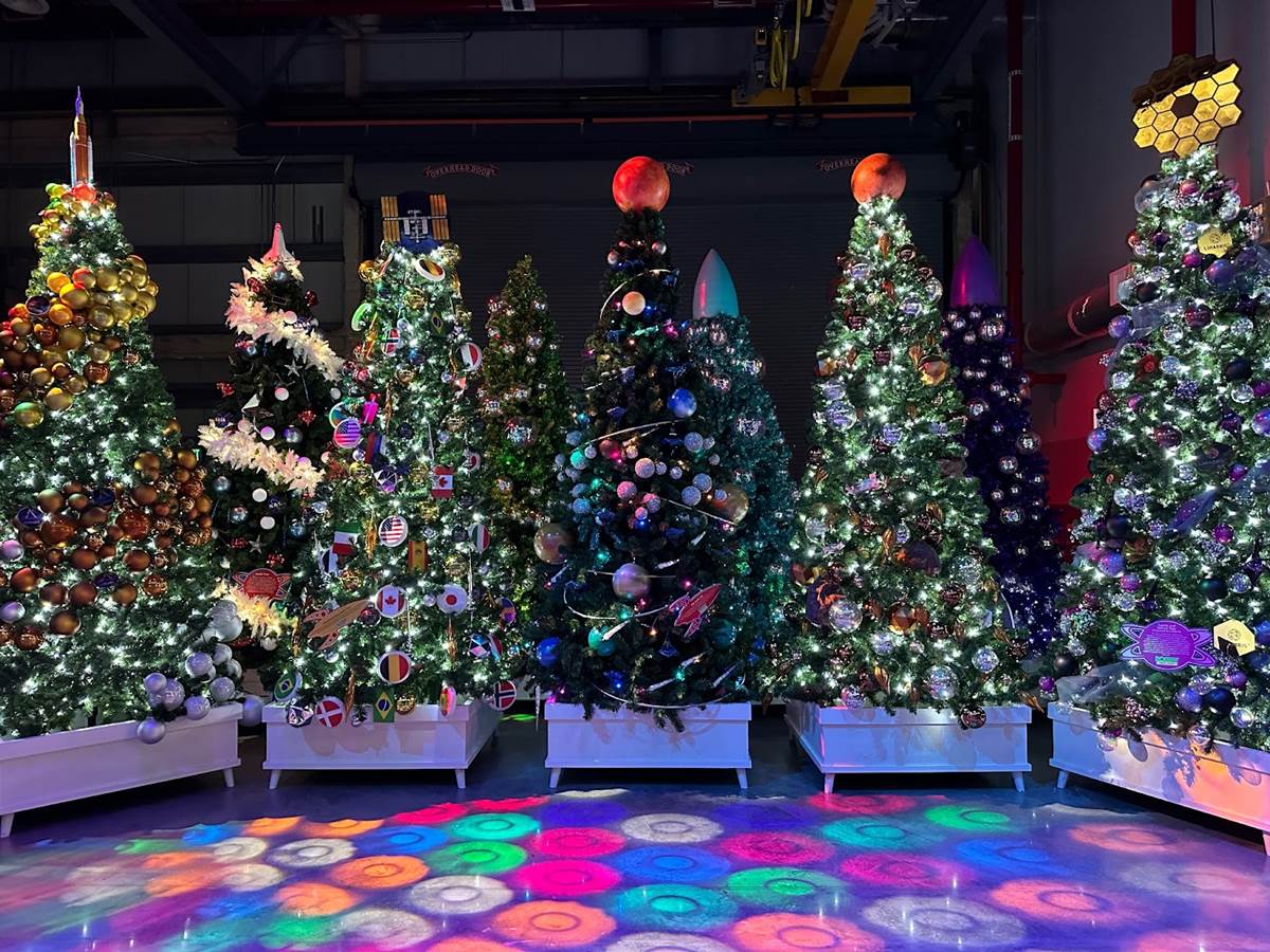 This year sees the addition of the all-new Rocket Tree Trail (sponsored by L3 Harris Technologies), usually located behind Orbit Cafe. When we visited, there was some inclement weather approaching for the weekend, so the trees were moved into the Gateway building.