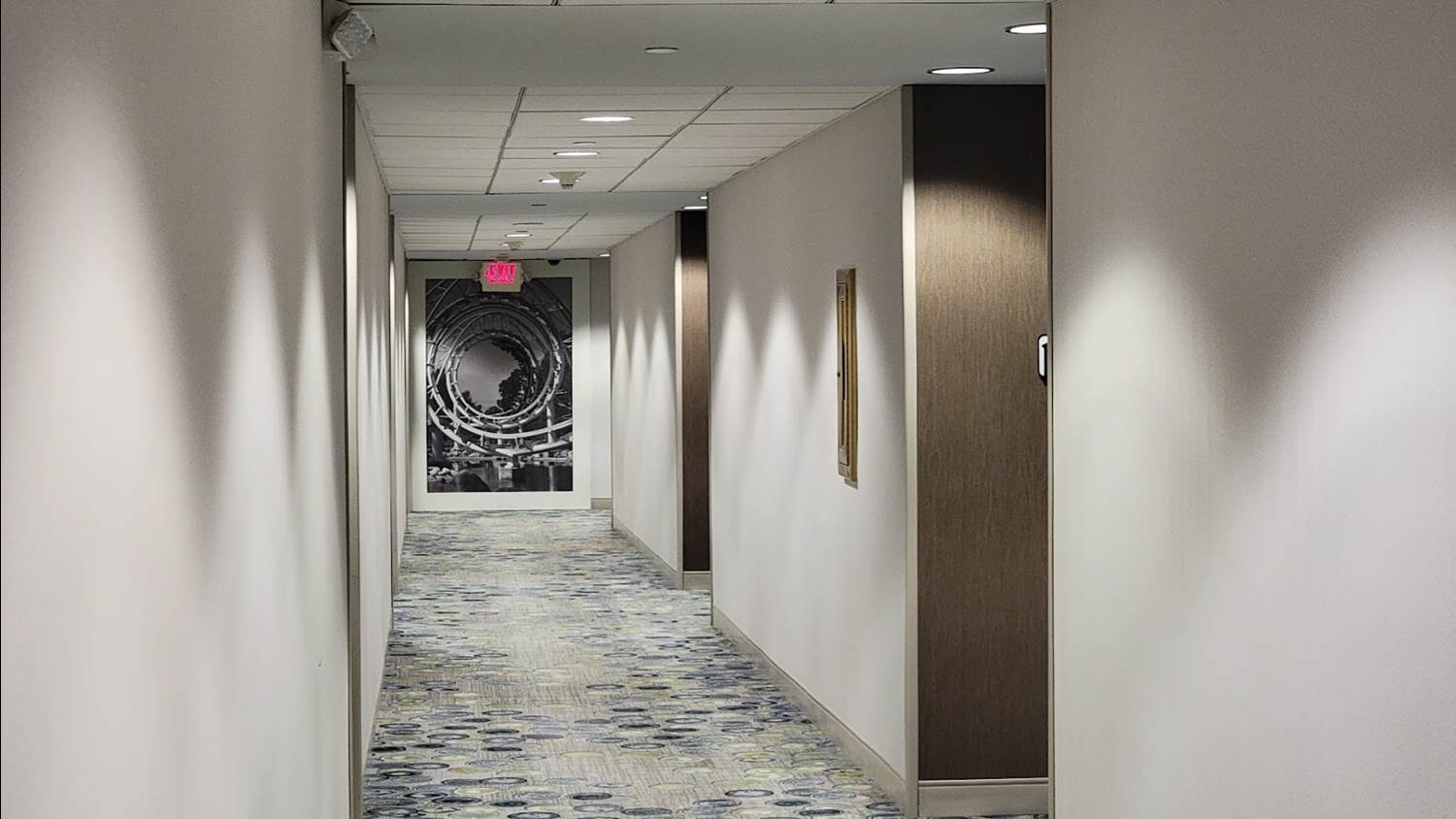 Imagery from the history of Knott’s can be found throughout the hallways of the hotel, such as this image from the classic Corkscrew coaster.