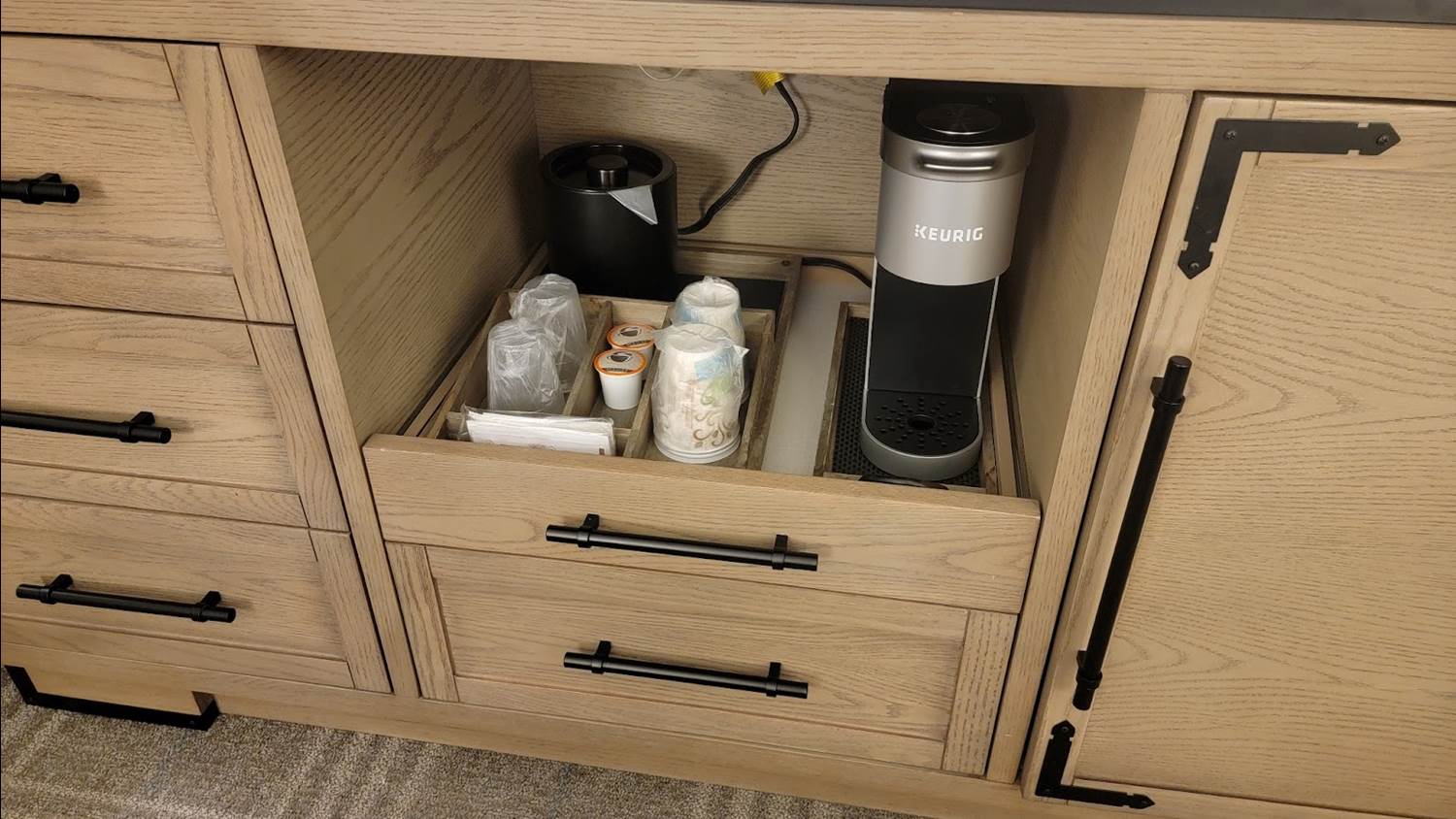 Plenty of amenities are included with your Knott’s Hotel room, including a Keurig machine.