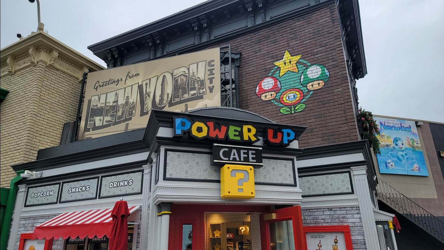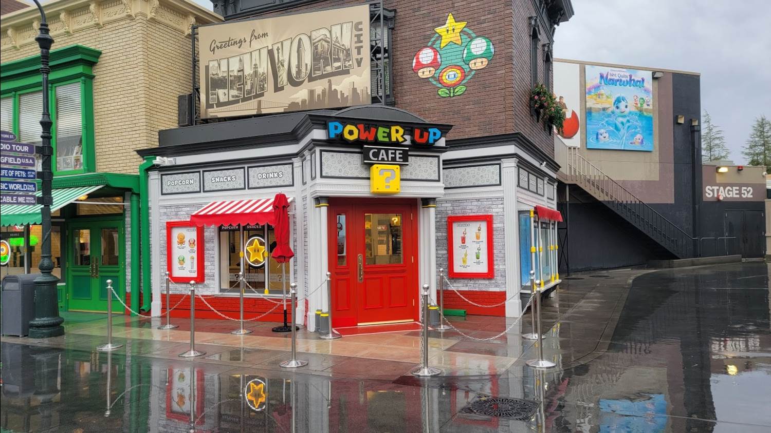 - When the all-new Power Up Cafe opens on New York Street, located on the Upper Lot inside the theme park, this exciting original concept venue will invite guests to power up outside of Super Nintendo World.