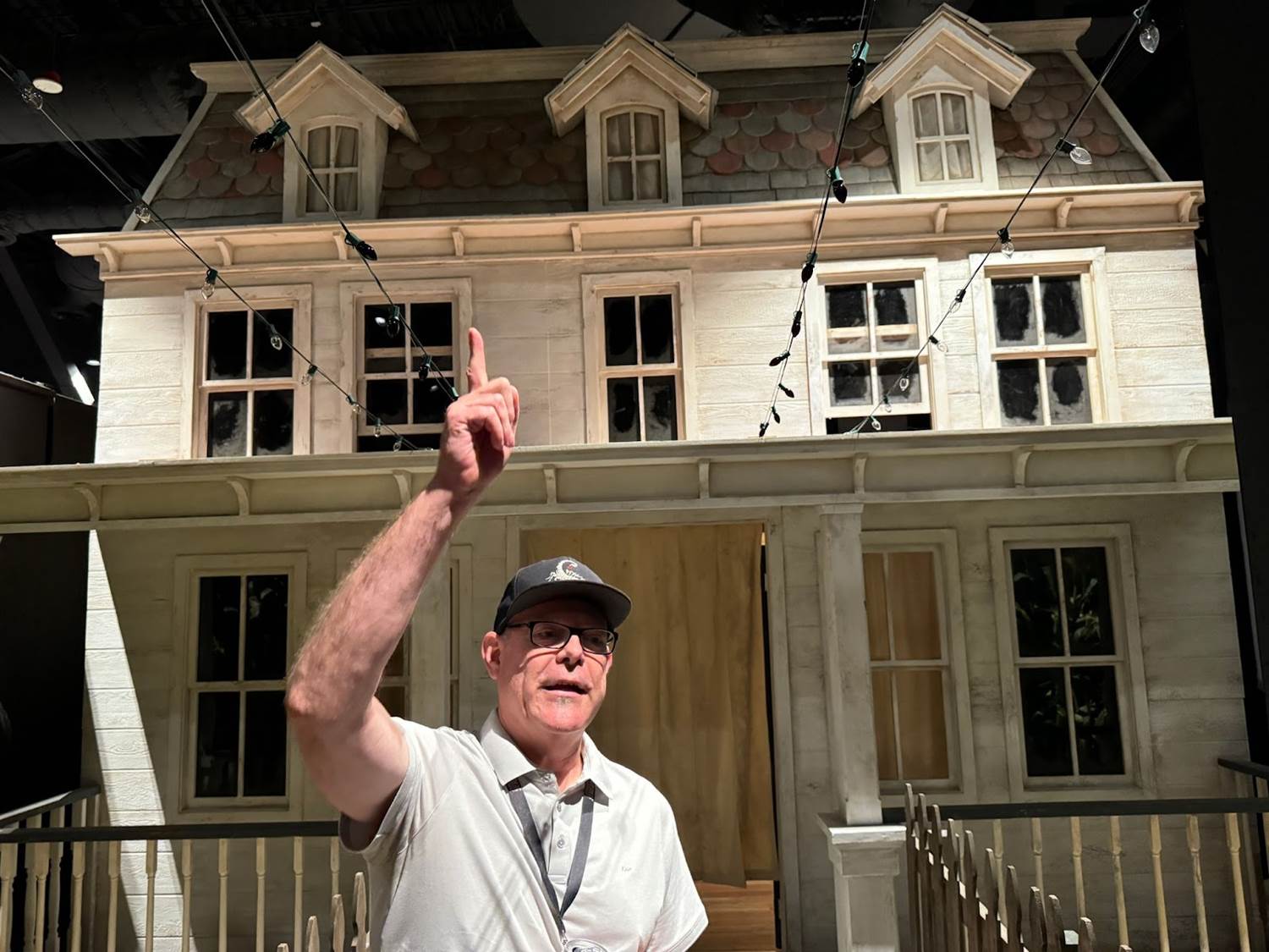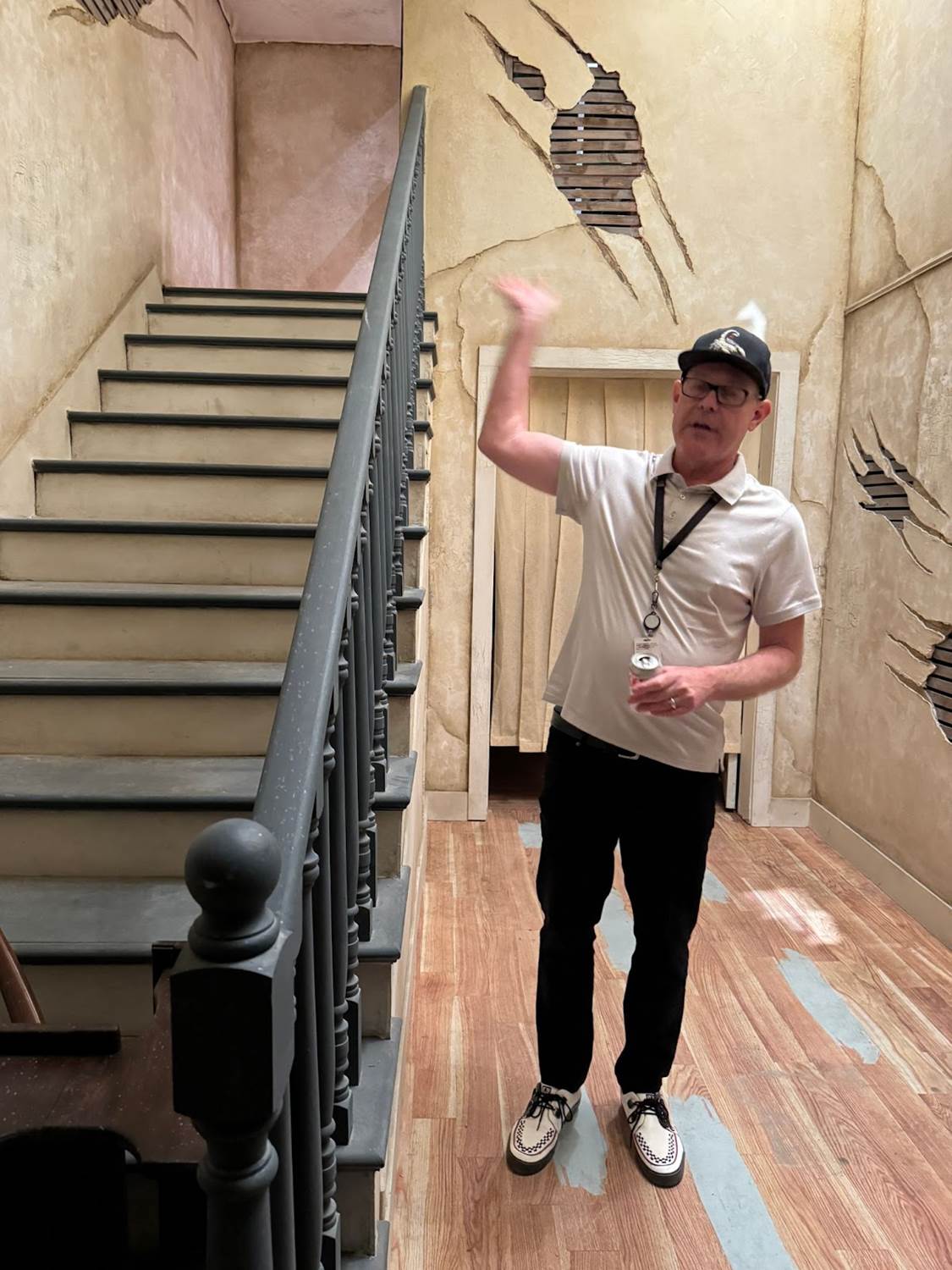 “The second is the use of American Sign Language in the film. It's such a big part of A Quiet Place, not only in the character of Regan– which John Krasinski, you know, sought out and specifically cast a deaf actress to play that role– but [in] the way that ASL is used throughout the movie, because not only does Regan use it, but other members of the family use it because they can't make noise; they have to find other ways to communicate. So we wanted to fold in American sign language into this house, and we do that in two ways. Out in the queue line where there [are] video displays, we do a whole pre-show video, but it's the only pre-show video I've ever shot in my career that has no audio– it's literally all done through ASL. We cast a deaf actress who works here at Universal Studios Hollywood [and] we worked with our DEI team and experts on the Universal side to tell the story of A Quiet Place entirely through ASL with open captions so everybody else can read it. And then as part of that pre-show video, the person who's talking to you– who's just a survivor in the world of A Quiet Place– is telling you there [are] certain things you need to know if you want to survive in this world, and she's teaching you basic ASL."
