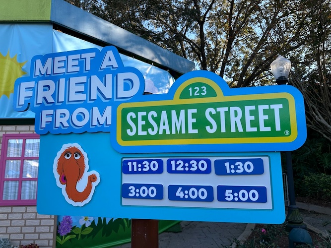 You can find Mr. Snuffleupagus daily from 11am to 5pm for meet and greets, with a sign outside the photo spot letting you know when the next window begins.