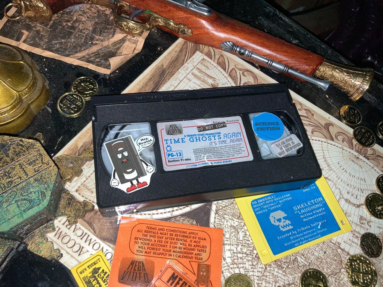 - Additionally, a VHS tape can be seen on the desk with the title “Time Ghosts Again."