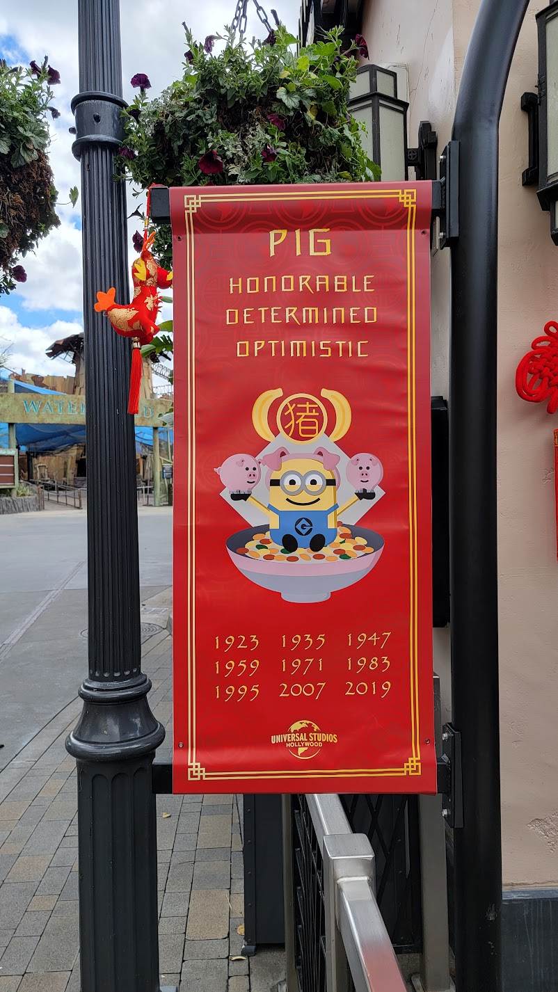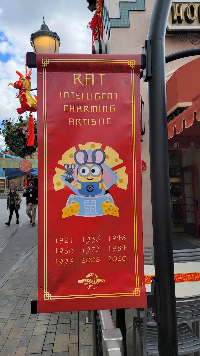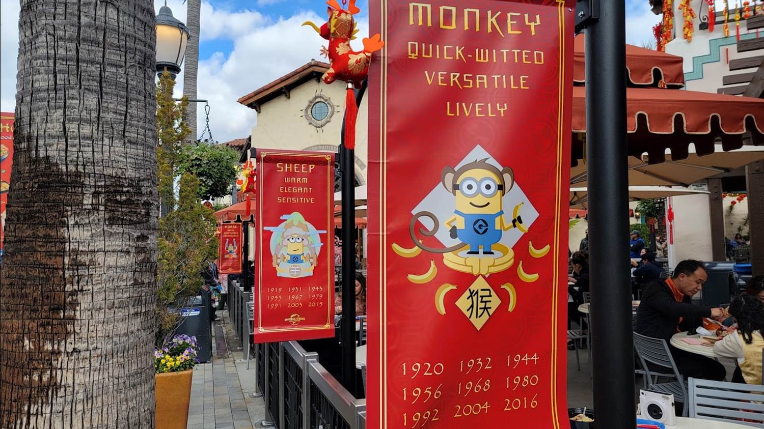 The minions are joining in the fun by helping to highlight the animals of the Chinese Zodiac and what they represent. They line the area on lamppost banners.