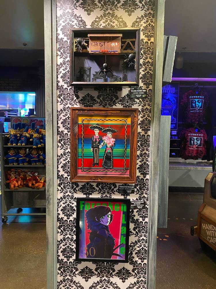 Over in the Factory Store gift shop, guests can peruse the “Into the Fog" art show, which celebrates 50 years of Knott’s Scary Farm via some very cool artwork contributed by fans.