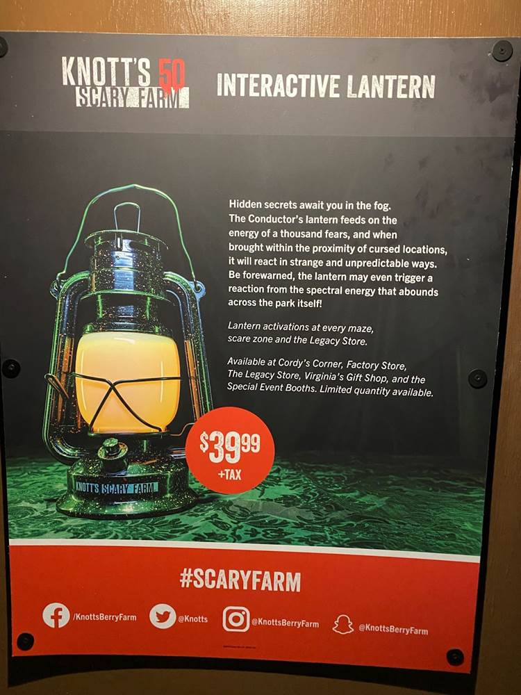 My one minor nitpick with Knott’s Scary Farm 2023 is the Interactive Lantern, which sells for about $40… my wife and I picked one up at the preview event a few weeks ago. Advertised as having 100 different activations throughout the park, I would say we were a bit disappointed with the reality of this technology. The lantern did change color in a few mazes and scare zones, but otherwise seemed to be doing very little. But we’ll be going back to Scary Farm in a couple weeks with friends and I’ll be sure to bring the lantern along again to see if the Knott’s creative team has gotten the bugs worked out. Fortunately I was quite happy with my purchase of the Knott’s Scary Farm 50th anniversary history book by Ted Dougherty– available now at the park.