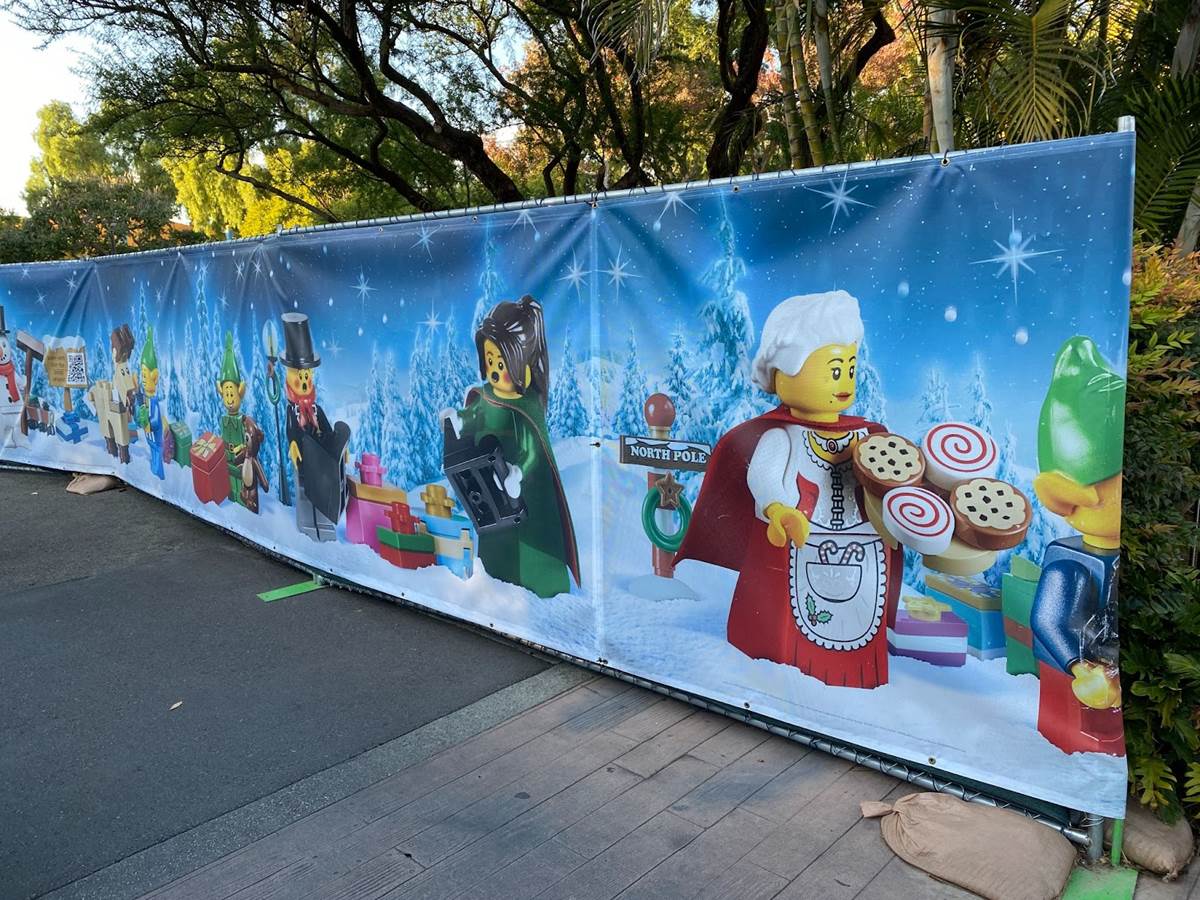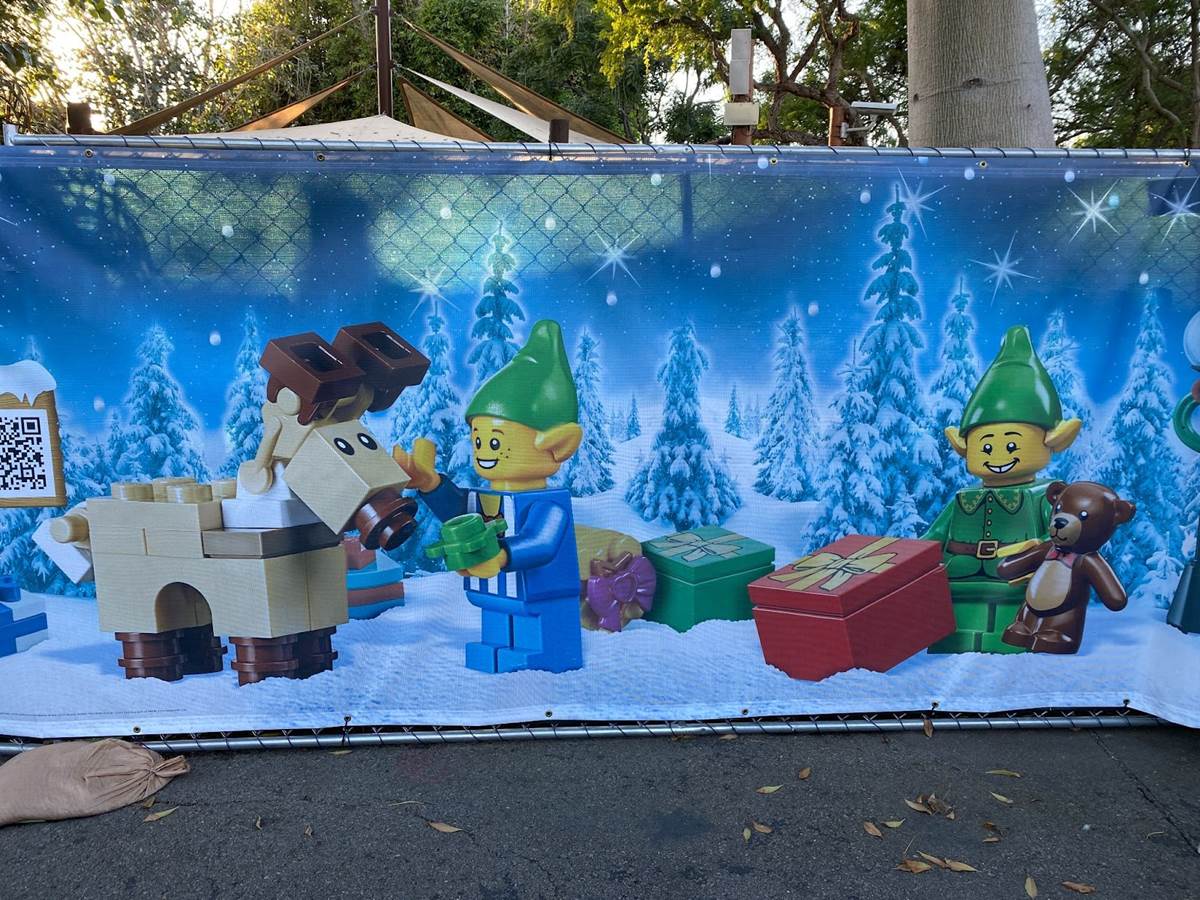 Outside of the entrance to LEGOLAND California, guests will find a statue of LEGO Santa Claus greeting them on the way in, next to a smaller tree made of oversized LEGO.