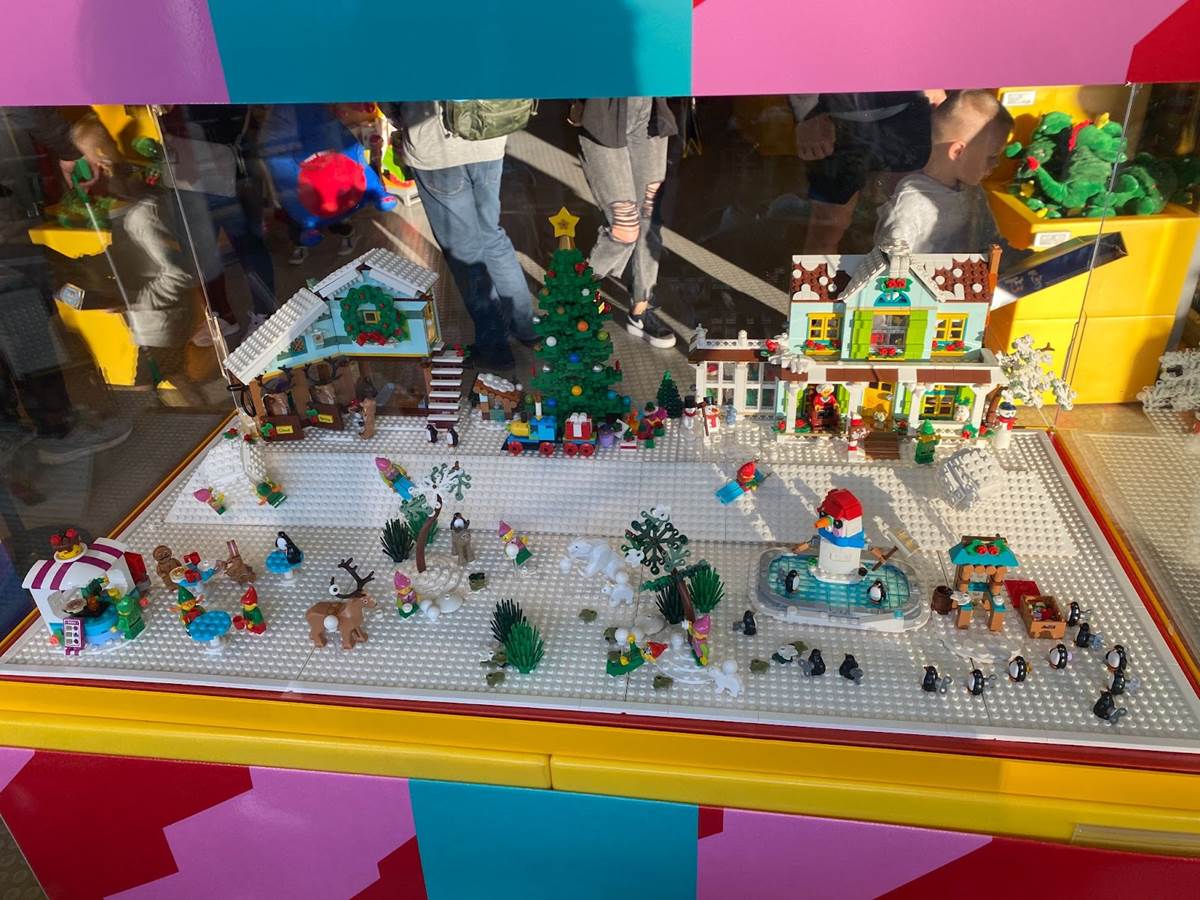 Then inside the park, LEGOLAND California is fully decked out for the holiday season, complete with the above-mentioned Christmas tree, other decor, and walkaround characters like the LEGO toy soldier. Inside the main gift shop near the entrance I spotted some wintertime scenes built of LEGO, and the stage was set up around the tree for that evening’s lighting ceremony.