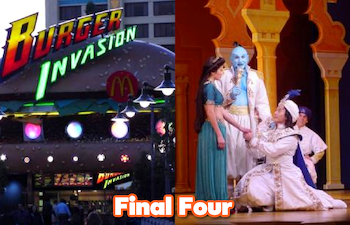 Mouse Madness 12: Final Four - Burger Invasion vs. Aladdin: A Musical Spectacular Apr 01, 2026 6:54 am (Pacific) Laughing Place Staff