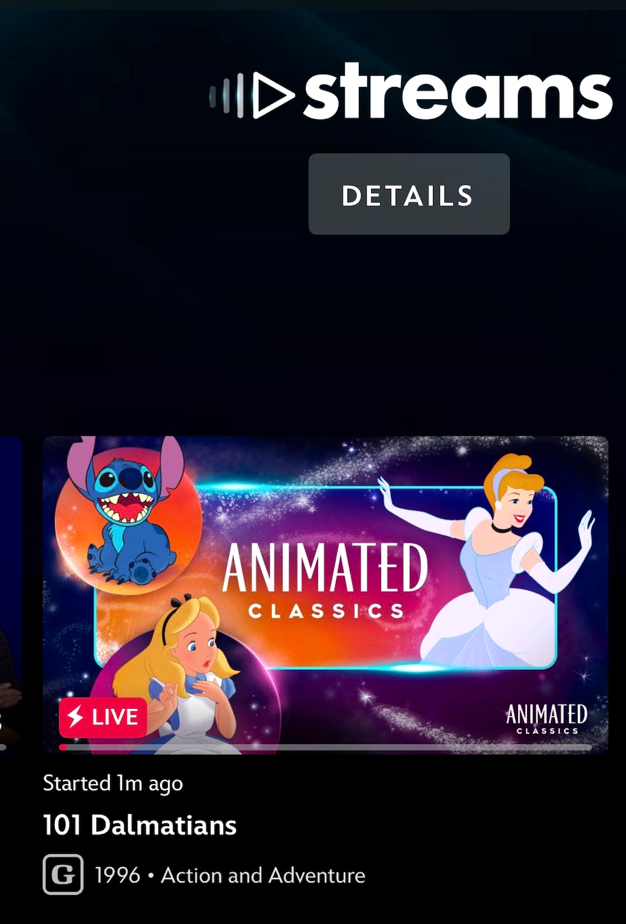 - That’s because the stream is populated with, as one would expect, animated classics. When time rolled around for the stream to play the 1961 animated favorite, 101 Dalmatians, they definitely got 101 Dalmatians.