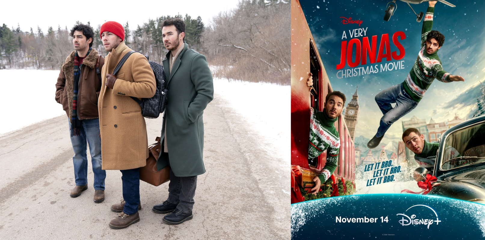 Let it Bro! The Jonas Brothers are trying to make it home for Christmas in the official trailer for their brand-new film, A Very Jonas Christmas Movie, premiering November 14 on Disney+ and Hulu.