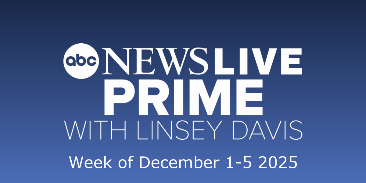 ABC News Live Prime with Linsey Davis Guests for the Week of December 1-5: