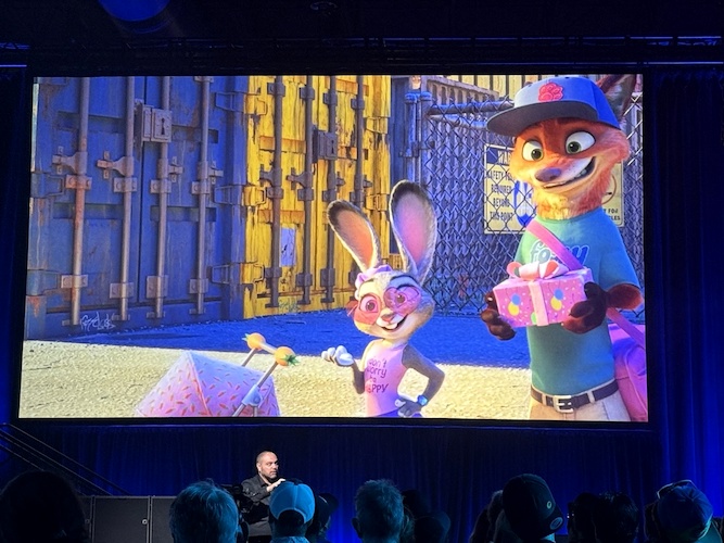 - Jared Bush, Chief Creative Officer of Walt Disney Animation Studios and director of Zootopia 2 alongside Byron Howard, and writer of the film showed off a few moments to the crowd.