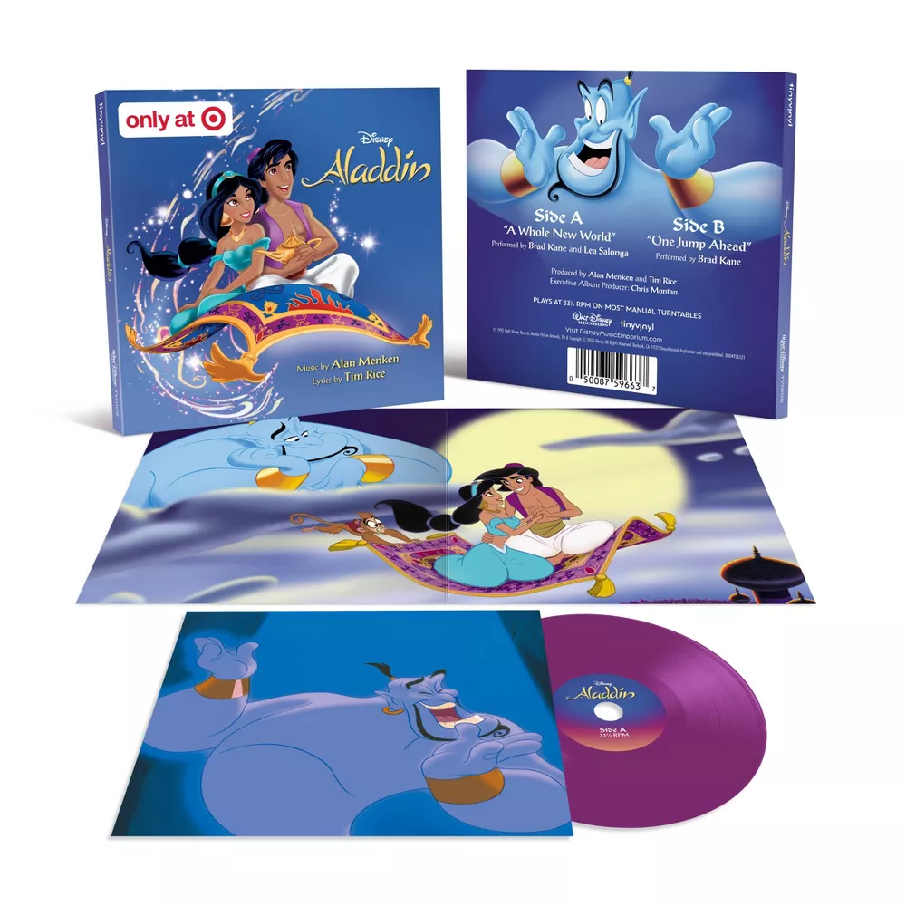 - Featuring two iconic tracks from Disney’s Aladdin, this miniature record proves that big magic can come in very small packages.