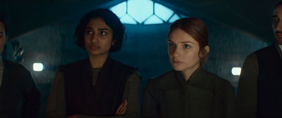 Cassian storms off, and we cut to the ISB office the next day, where Major Partagaz (Anton Lesser) chats with Supervisor Heert about Dr. Gorst’s success. It seems the torturer’s role has been expanded to other parts of the Galactic Empire., and assigned Heert and Lonni Jung (Robert Emms) to watch over the program. “Fill me in after you’ve read the brief," says Lonni to Heert as he walks away. On Ghorman, Vel meets with her on-again-off-again girlfriend Cinta Kaz (Verada Sethu) to talk about the Ghorman Front. They plan the strategy to help the revolutionaries hijack the Imperial shipment of weapons: “If we don’t like it, we walk." Vel also tells Cinta that she only wanted this assignment if Cinta was on it as well. “It’s been a long year," Cinta says. “I had to rest up for quite a while. I had time to think." “I wish I’d known," responds Vel. “I thought about you," says Cinta. At the ISB headquarters, Partagaz grills Dedra Meero (Denise Gough) about the situation on Ghorman, and tells her that Syril must never know “what this is really all about."