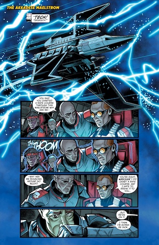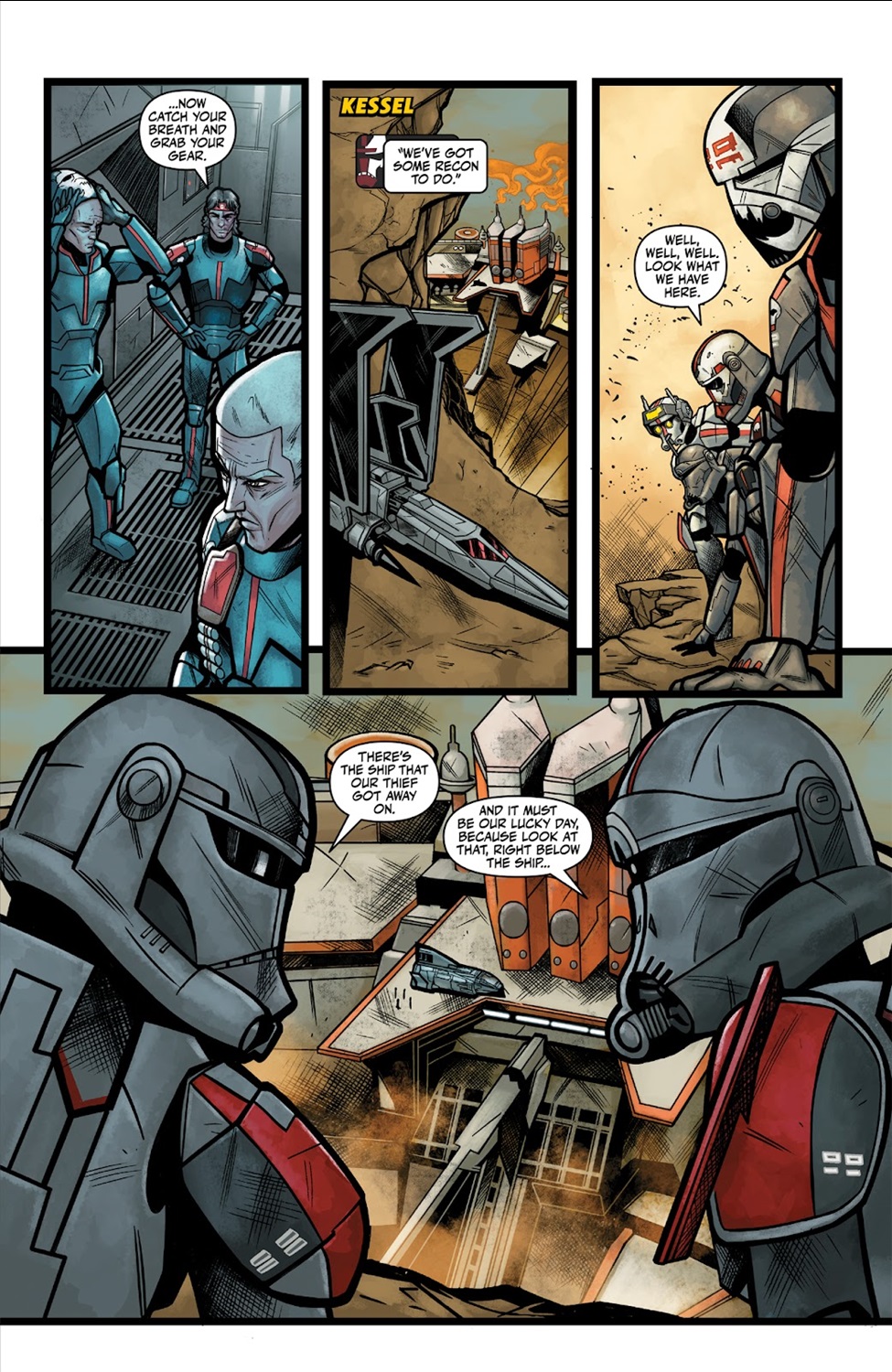Hyperspace Stories - The Bad Batch: Ghost Agents #2 begins in the Akkadese Maelstrom in the Kessel sector, where Wrecker is nauseated by the turbulence as the Marauder careens toward its destination. Finally arriving on Kessel in pursuit of their prey, the members of Clone Force 99 peer over a canyon’s edge and spot the thief from the previous issue (it’s been more than a month and a half since that was released, so I’m struggling to remember what it was exactly that this person stole– could have used a text-crawl recap here as a reminder) talking with a representative of the Pyke syndicate. A deal is struck and the thief is permitted to board a Pyke shuttle and fly away, but not before the Bad Batch short-circuits a spice converter, causing an explosion as a distraction.