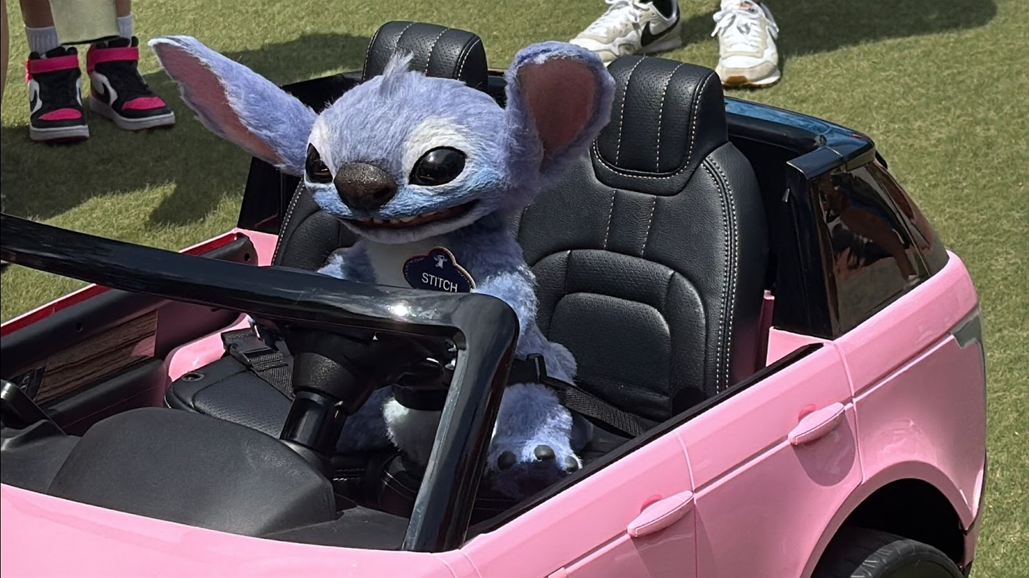 - Stitch also came out to greet fans in his pink ride-on car adorned in his own Stitch themed name tag.