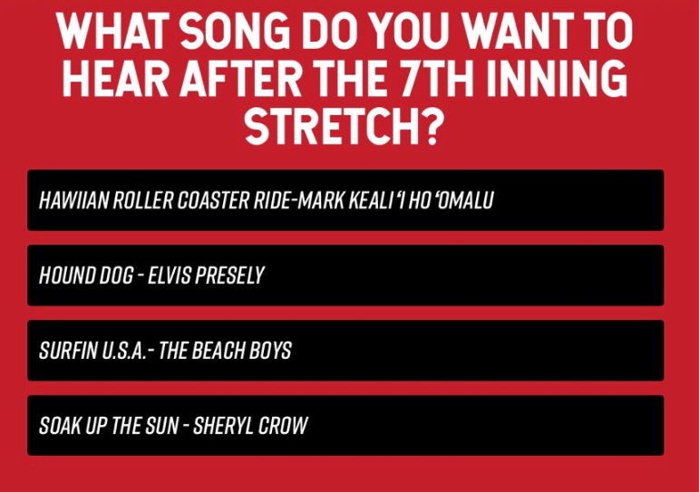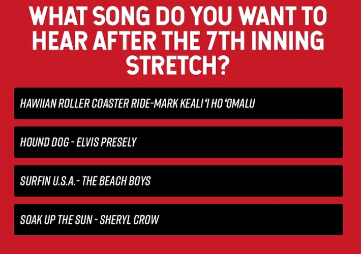 - At Angels Stadium, fans get to vote on the 7th inning stretch song, and, just for today’s celebration, “Hawaiian Roller Coaster Ride" was an available track.
