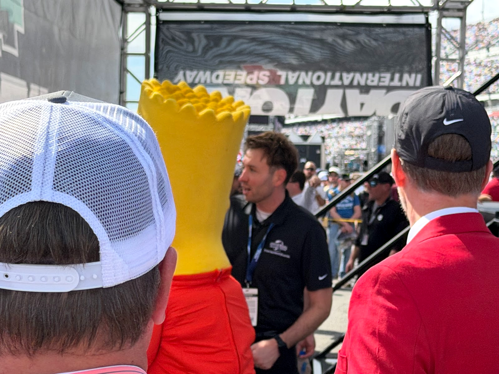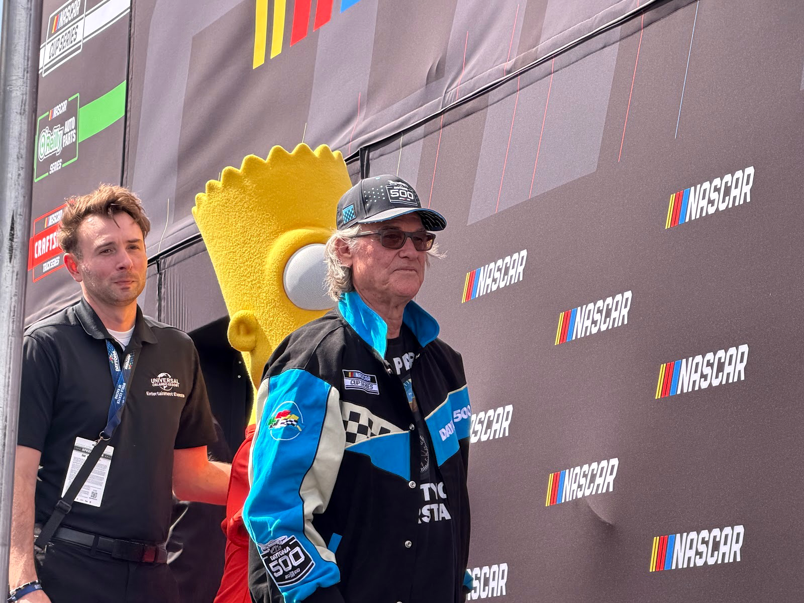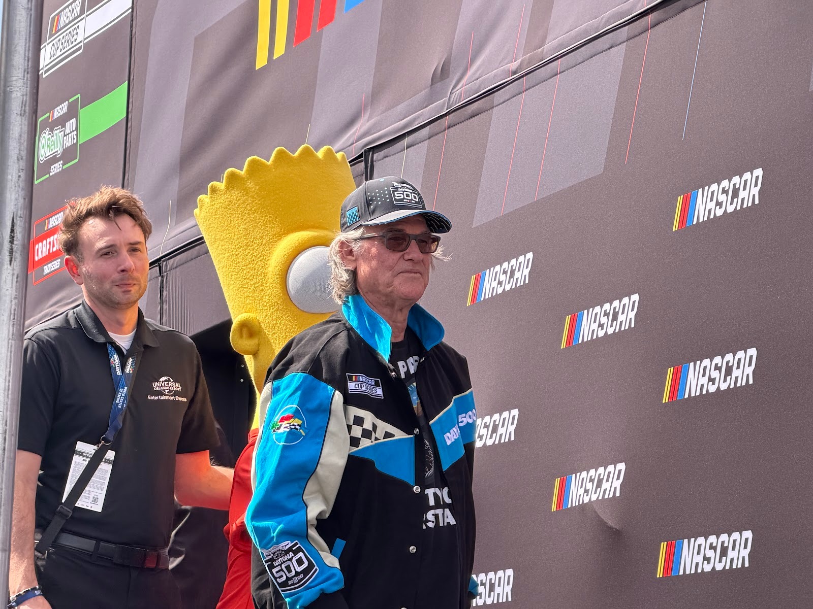 Also serving as a friendly reminder, Bart Simpson was on scene waving the green flag at the race today, since the 800th episode of The Simpsons will be airing on Fox tonight after the coverage of the Daytona 500. Bart Simpson appeared with handlers from Universal Studios Florida, as that is where the character makes appearances not far from the Daytona International Speedway.
