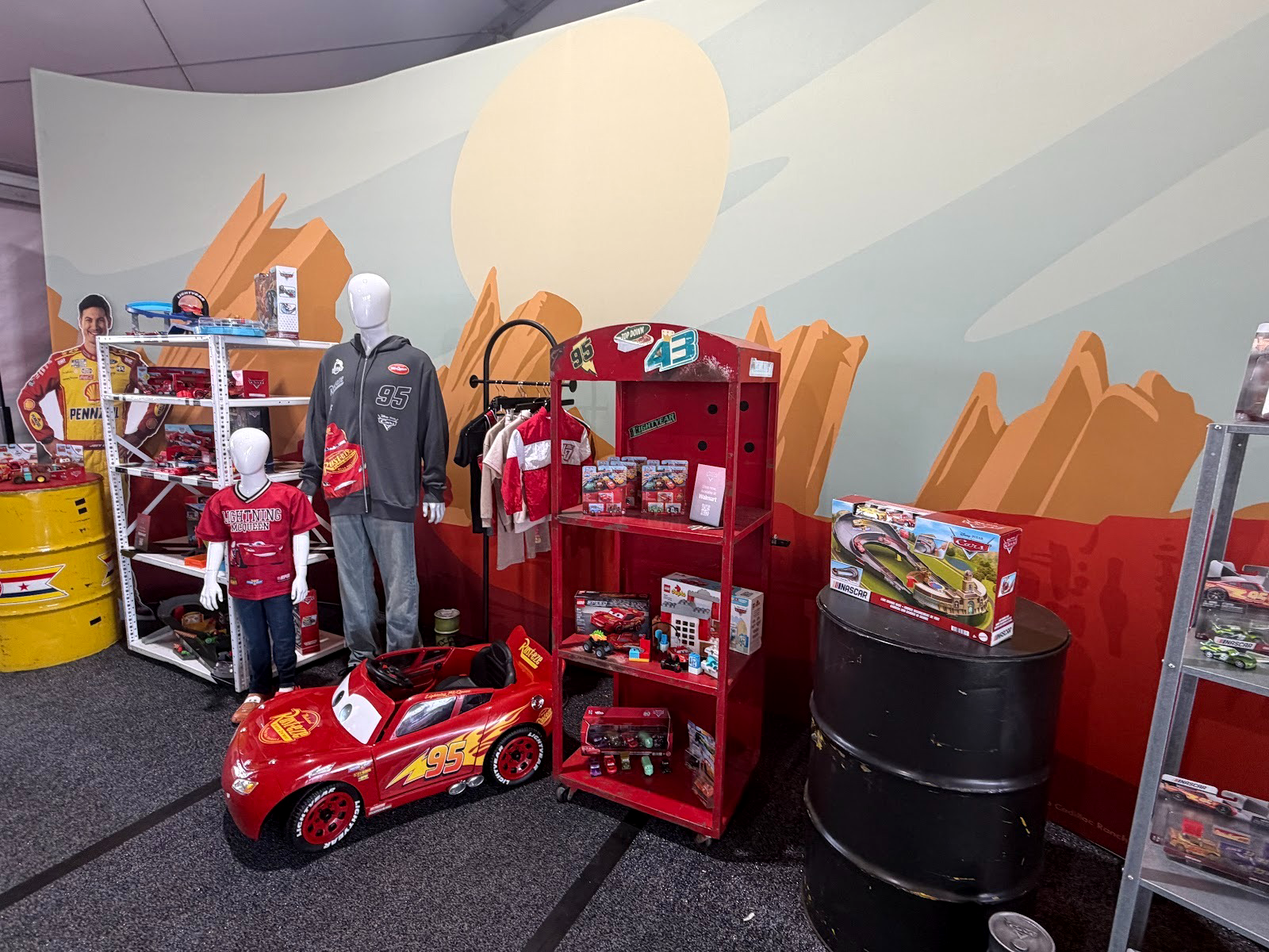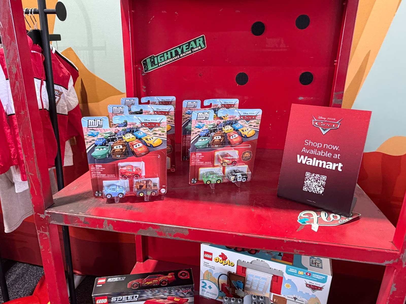 Inside the experience, you can see some toys featuring the cast of Cars characters, which have been a familiar sight since the original film debuted back in 2006. While Cars was a box office success, its real financial engine has been merchandise. Over the years, retail sales have generated over $10 billion globally, making it one of Disney’s most lucrative franchises in terms of consumer products. That is on display in full force in the pop-up experience.