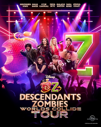 - Disney Concerts: “The ‘Descendants / Zombies: Worlds Collide Tour’ promises an electrifying mashup of music, dance, and on-stage magic while celebrating the chart-topping music from the ‘Descendants’ and ‘Zombies’ franchises. The one-of-a-kind event will have families and fans dancing and singing with their favorite stars performing live on stage. The talented lineup includes Kylie Cantrall, Freya Skye, Malia Baker, Malachi Barton, Dara Reneé, Joshua Colley, and Mekonnen Knife."