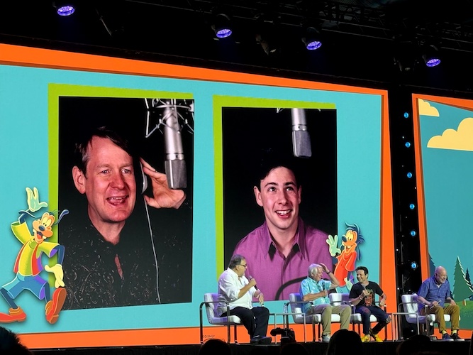 Bill Farmer recalled his very first time voicing Goofy in 1987 for Dog Gone Valentine, a Disney Channel DTV short that stitched together old animation with new dialogue. That gig led to his official casting as Goofy and, soon after, the starring role in the Disney Afternoon series Goof Troop. Farmer joked that while his wife is a trained pianist and his son is a professional drummer, he’s the only one in the family with a gold record, thanks to Goofy’s musical legacy.
