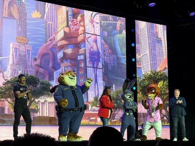 The presentation ended with Nick Wild and Judy Hopps joining Yvette Nicole Brown, Patrick Warburton, and Jared Bush on stage, alongside the Disney Parks debut of Officer Clawhauser!