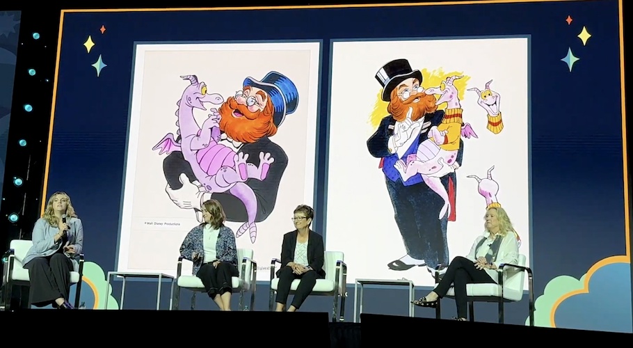 The big bombshell in terms of fun X Atencio trivia came toward the end of the panel, when Iwerks (seemingly completely in the know but coaxing the information out of the group) asked them outside of the Mexico pavilion and other EPCOT contributions, if there is anything Disney fans would love to know about his contributions to the park. Oh yeah, X did the final design of Figment. The crowd gasped in excitement. Before anybody pointed their finger in a corrective manner, the trio went on to explain that yes, Tony Baxter came up with the name, the idea, and the concept, and other artists submitted other sketches - but it was X’s final design that gave Figment the look that he has today.