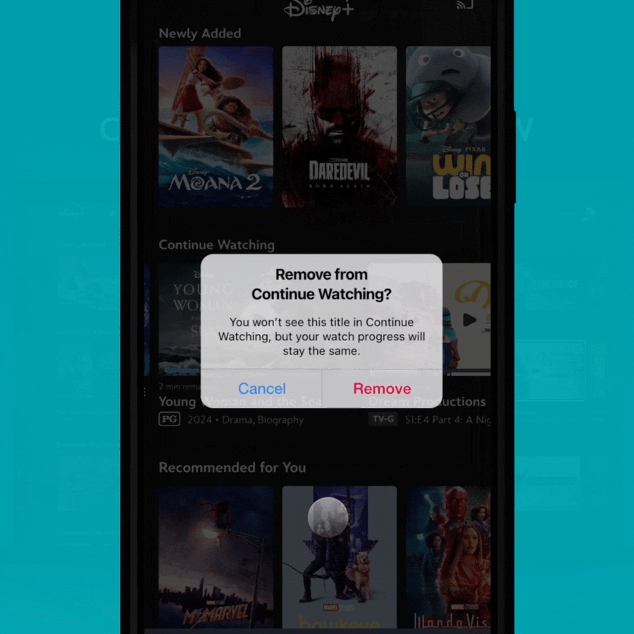 - A much-requested feature has finally been added to Disney+ through a global update to the “Continue Watching" section, allowing users to easily remove titles from the row.