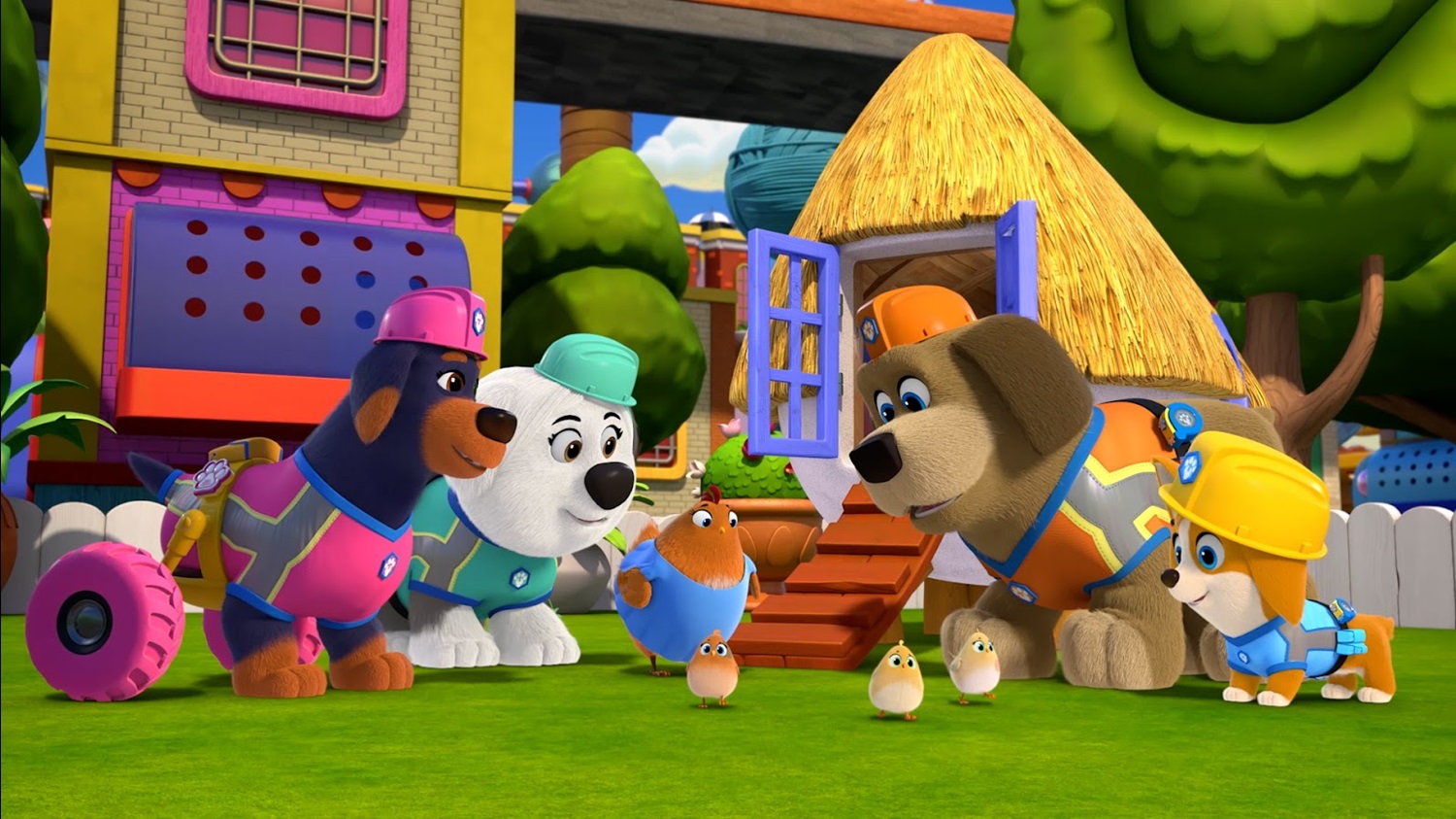 Chick eggs roll away from their coop in the middle of an Easter egg hunt and the Pups must find them.