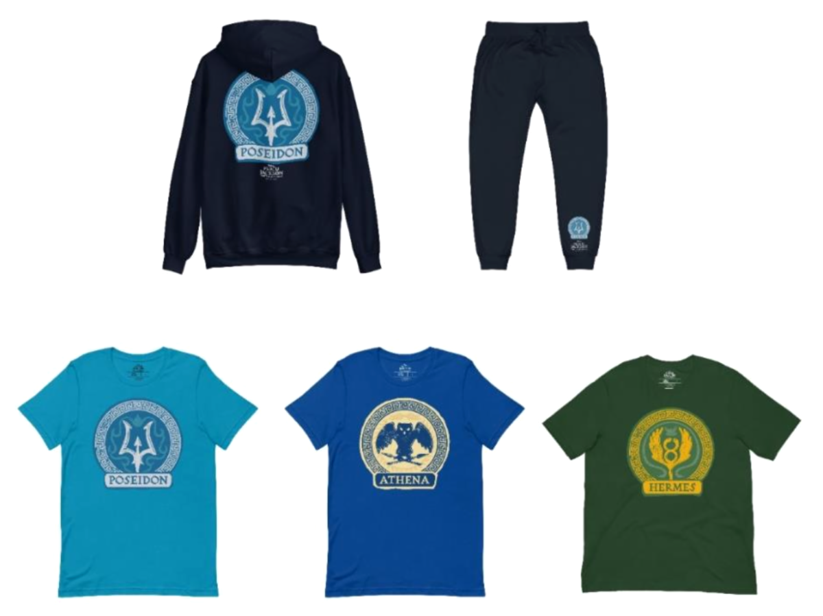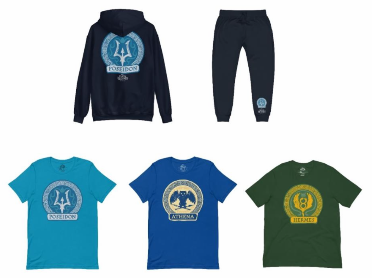 - These exclusive offerings include: Camp Half-Blood T-shirts and hats — just like the iconic ones worn by campers, Mugs and tumblers themed to the 12 Olympian gods, Stickers and posters emblazoned with each god’s crest, Merch representing Poseidon, Ares, Athena, Hermes, Zeus, Hera, Apollo, Artemis, Dionysus, Hephaestus, Demeter, and Aphrodite.
