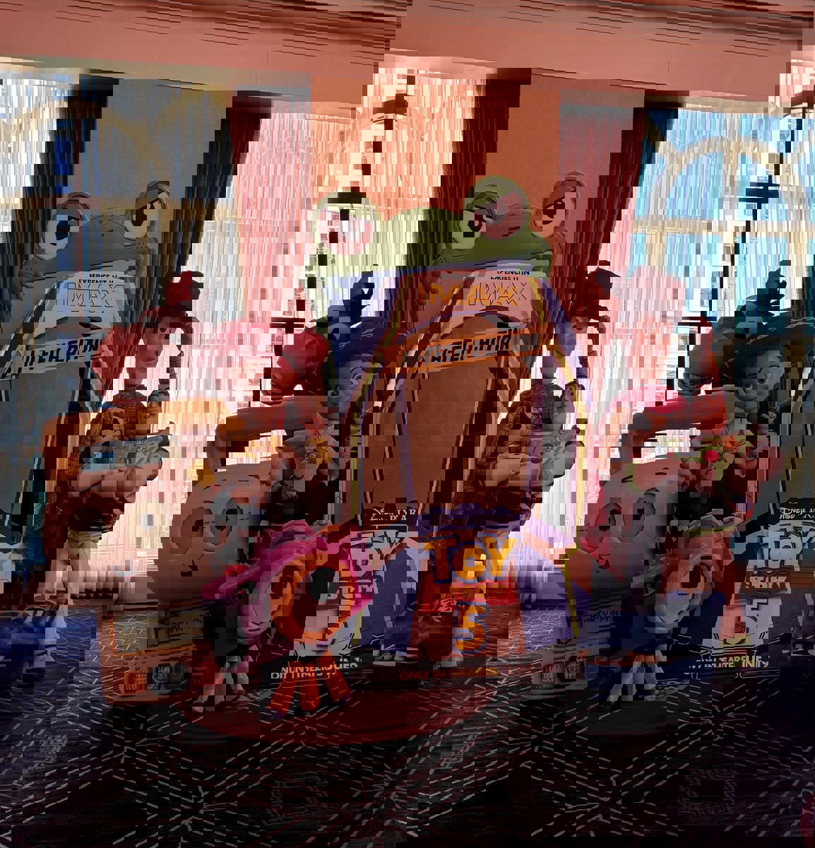 - First up is one we hadn't seen before for Pixar's Toy Story 5 (due out on June 19), featuring returning characters like Woody, Jessie, Buzz Lightyear, and Bullseye, standing among new additions such as Smarty Pants and Lilypad. This standee also features a photo opportunity that allows fans to pose within the famous spaceship-styled Buzz Lightyear packaging from the films.