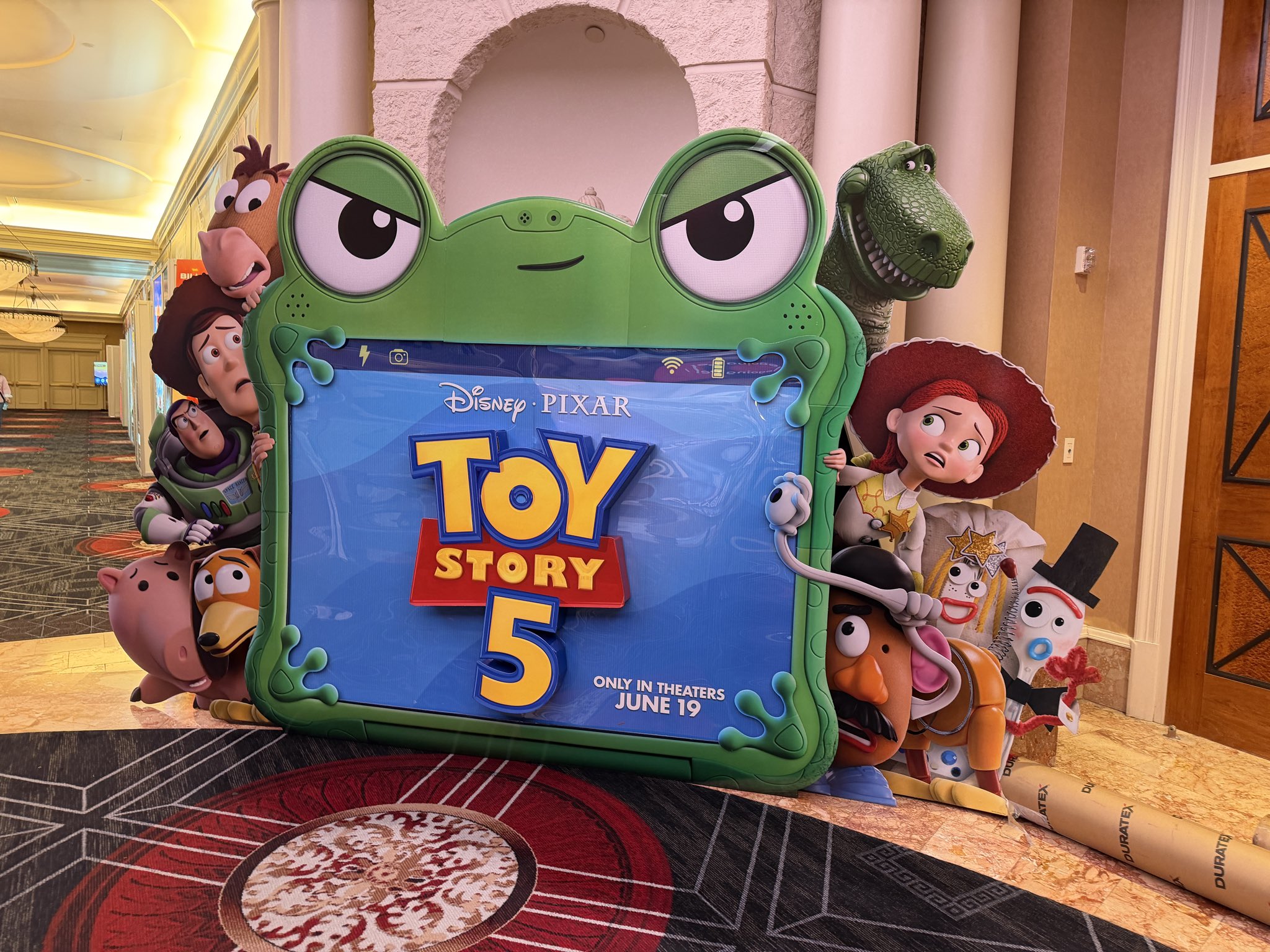 - Another, pre-existing Toy Story 5 standee depicts more returning friends, including Forky, Rex, Slinky Dog, Hamm, and Mr. Potato Head all gathered around Lilypad, who is expected to be the chief antagonist of the film.