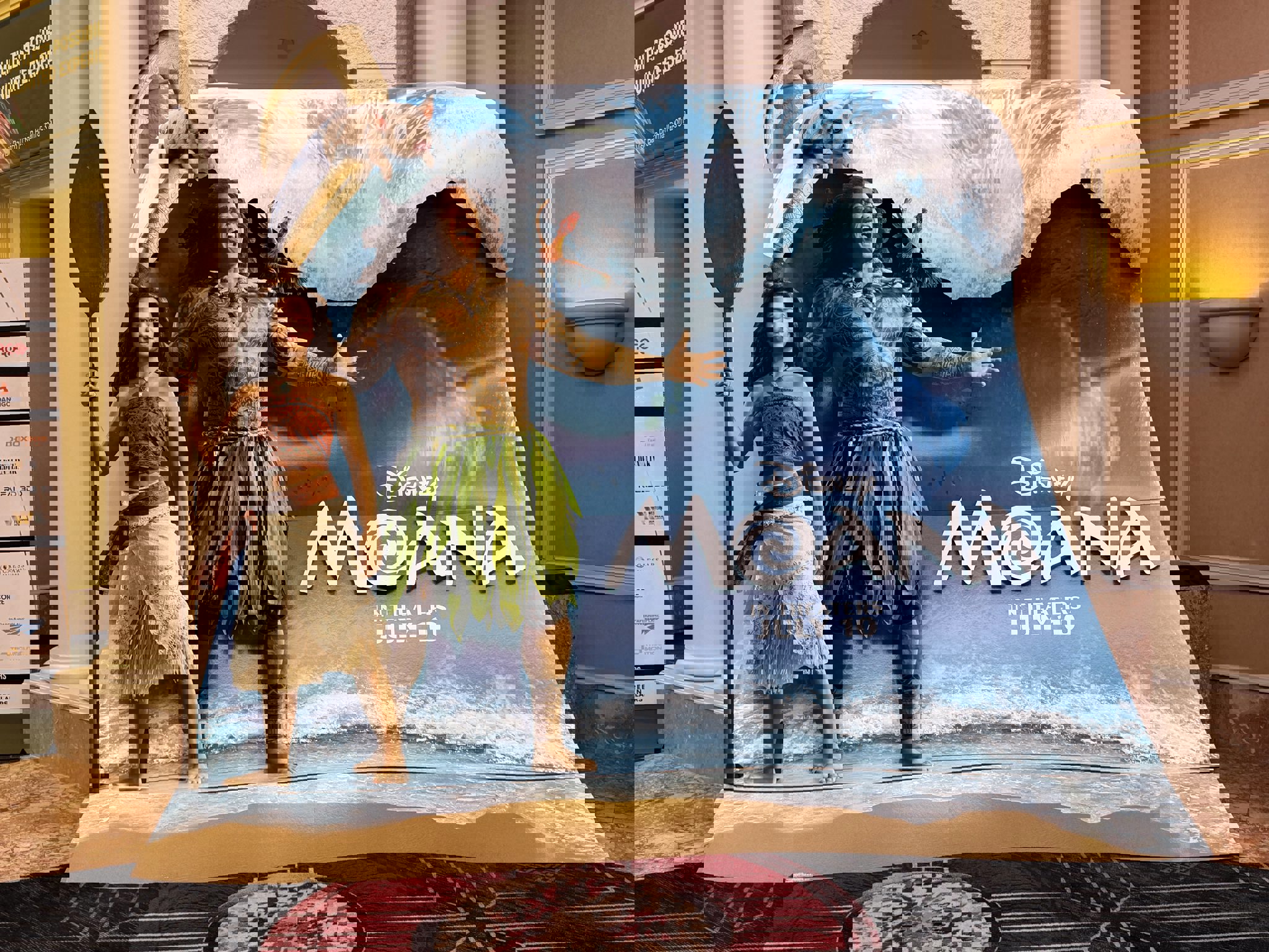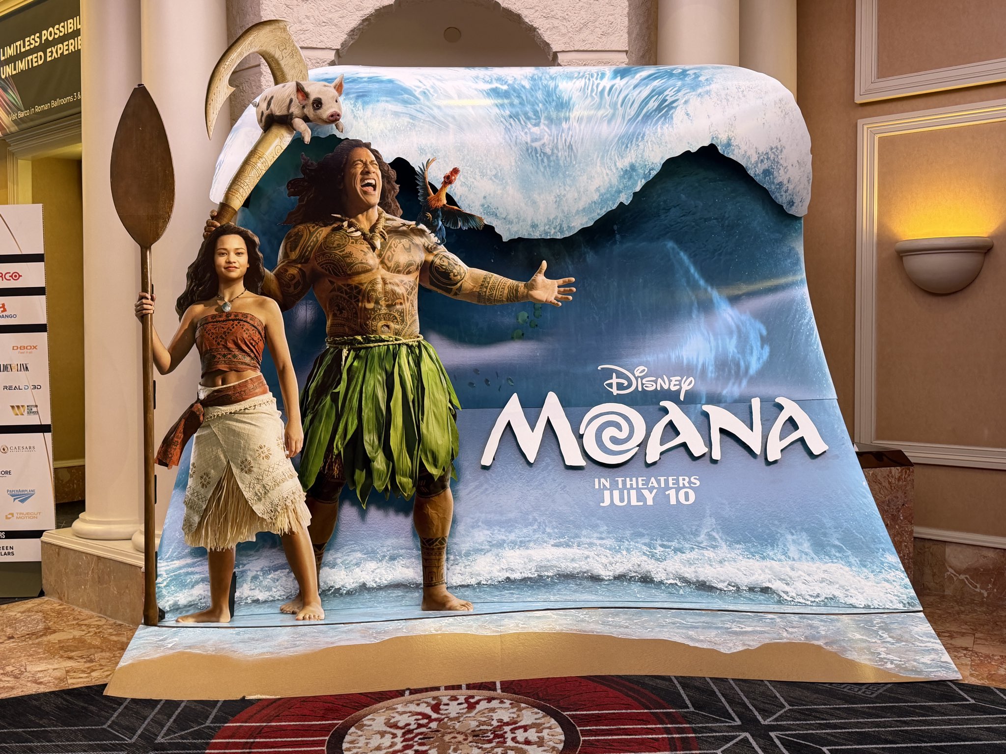 - Newly revealed at CinemaCon today is this standee for Disney's live-action reimagining of Moana starring Dwayne Johnson and Catherine Lagaʻaia. See the movie in theaters beginning July 10.