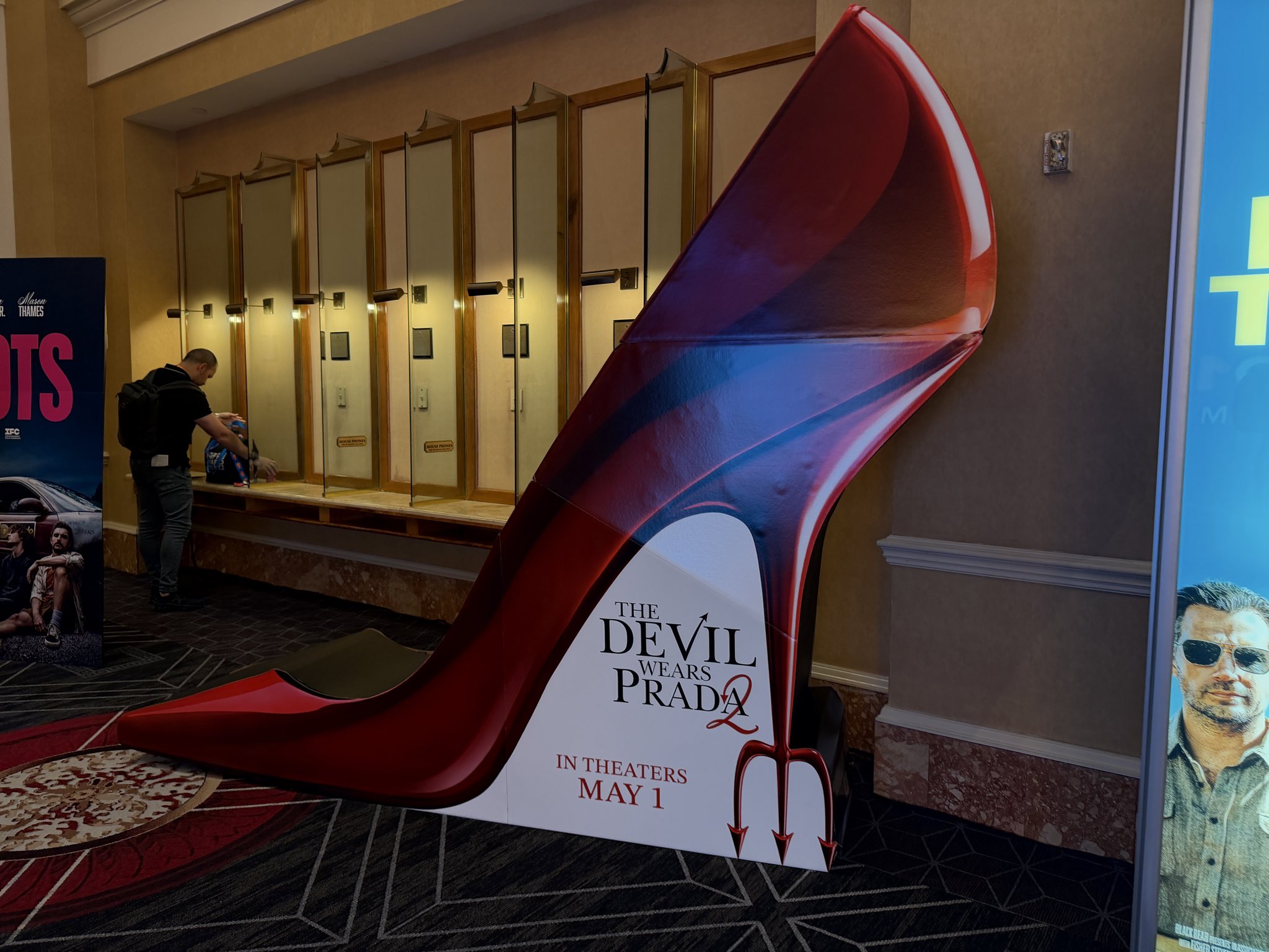 - The standee for The Devil Wears Prada 2, arriving May 1 from 20th Century Studios, is a big high-heeled shoe with a pitchfork at the bottom of the heel.