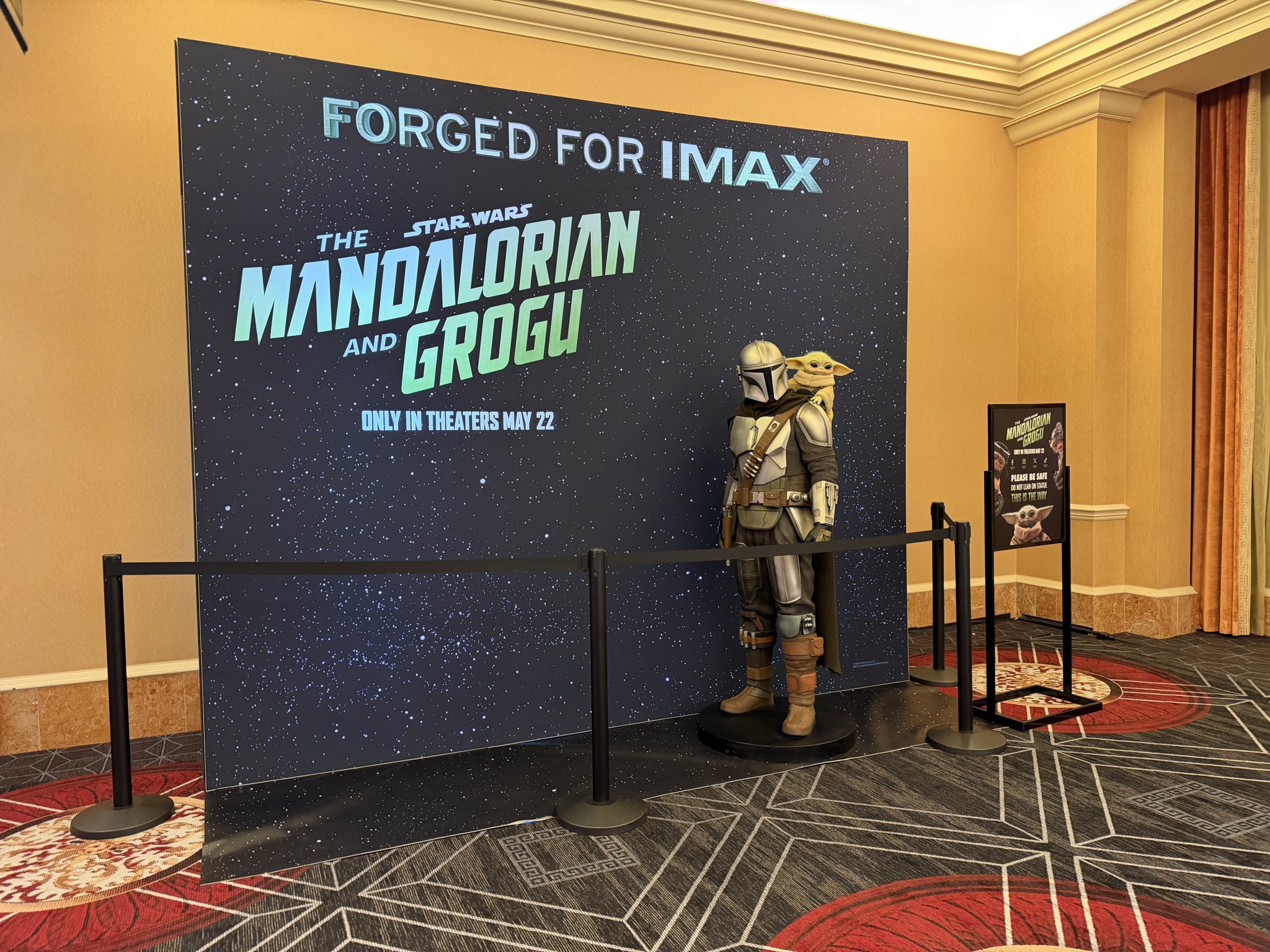 - And lastly, the standee for Lucasfilm's Star Wars: The Mandalorian and Grogu (coming May 22) features a life-size statue of the title characters.