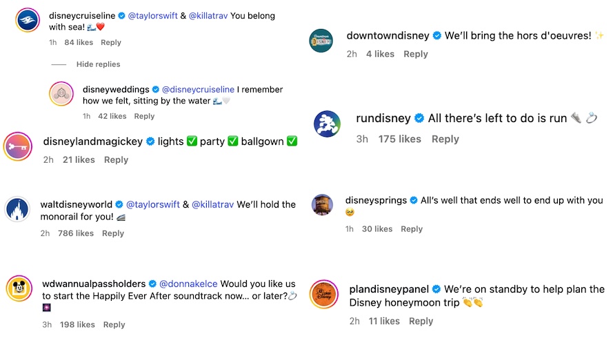 Various other Disney accounts commented on the Disney Weddings post with more lyrical references to songs such as “Love Story," “You Belong With Me," and “Mine."