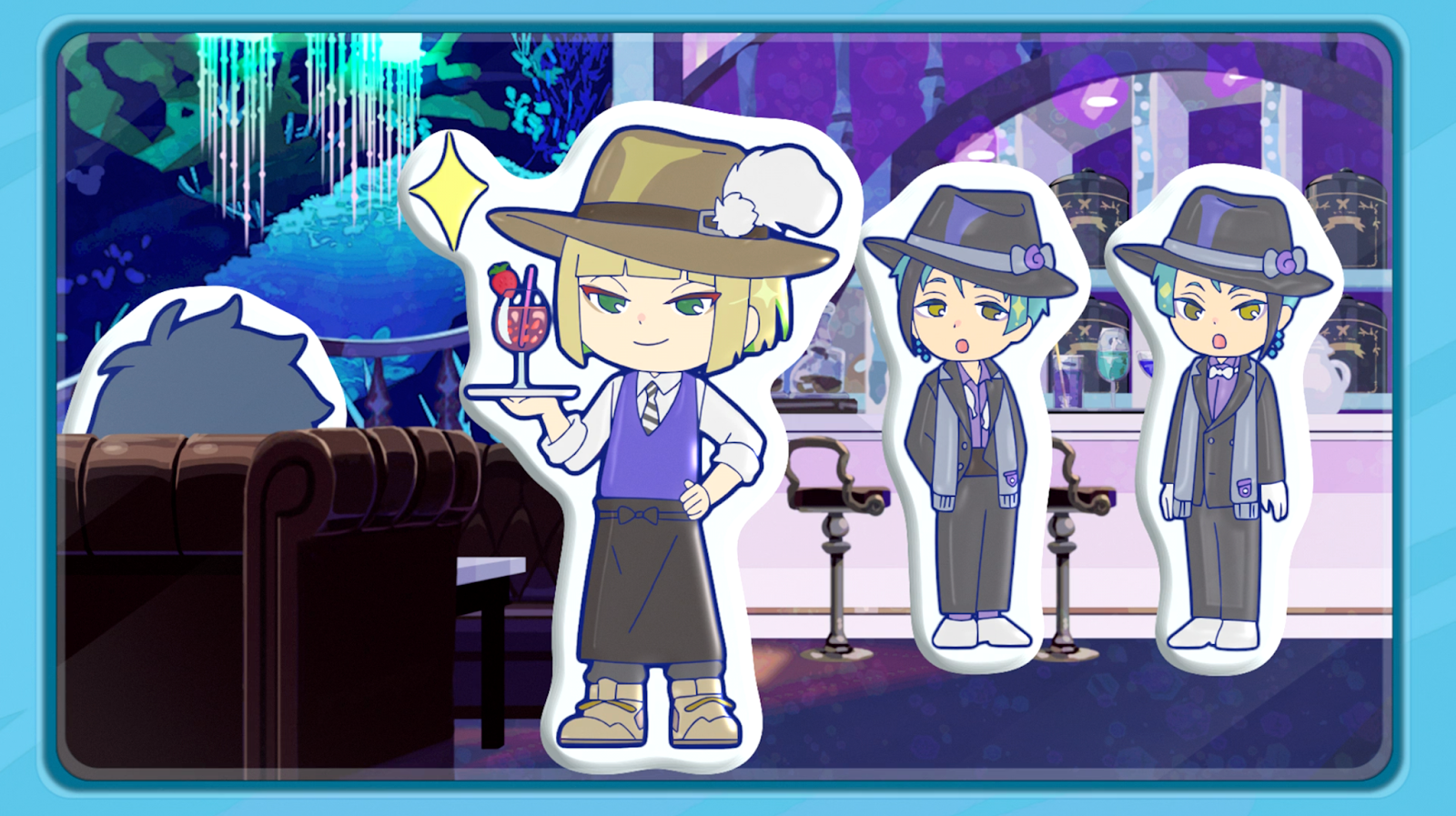 This episode’s bonus short shines a spotlight on Octavinelle House’s famous café, Mostro Lounge. Nobody can upsell menu items like Housewarden Azul Ashengrotto, who is in a housewarden meeting today. Jade Leech (Wataru Komada/Jonah Scott) wanders the halls of Night Raven College in distress over the lack of staffing and declining sales when Rook Hunt (Yoshirō Itokawa/Matthew Mercer) of Pomefiore House passes by, asking what’s wrong. Jade and his twin, Floyd (Nobuhiko Okamoto/Kellen Goff), ask for Rook’s help in the Mostro Lounge, thinking “the seagull” - a nickname they gave Rook because of the feather in his hat - will make a good salesperson. Rook agrees to try it.
