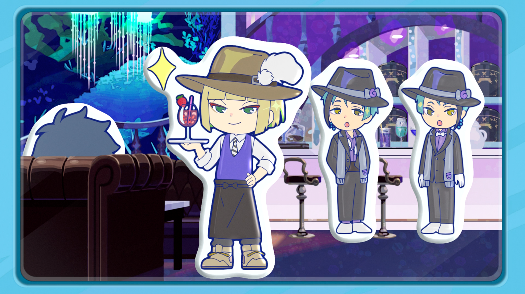 This episode’s bonus short shines a spotlight on Octavinelle House’s famous café, Mostro Lounge. Nobody can upsell menu items like Housewarden Azul Ashengrotto, who is in a housewarden meeting today. Jade Leech (Wataru Komada/Jonah Scott) wanders the halls of Night Raven College in distress over the lack of staffing and declining sales when Rook Hunt (Yoshirō Itokawa/Matthew Mercer) of Pomefiore House passes by, asking what’s wrong. Jade and his twin, Floyd (Nobuhiko Okamoto/Kellen Goff), ask for Rook’s help in the Mostro Lounge, thinking “the seagull” - a nickname they gave Rook because of the feather in his hat - will make a good salesperson. Rook agrees to try it.