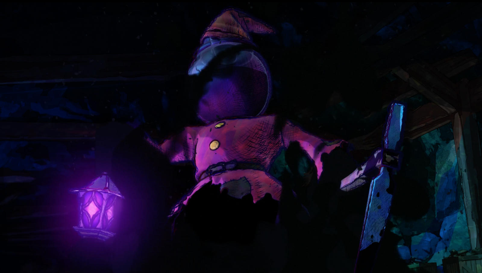 The Blot Monster swings its giant pickaxe at Deuce, who dives out of the way of most of its attacks. In the fight, the monster’s head knocks against a rock wall and starts to leak blot. As Deuce kicks the monster, he finds that the magic ink acts like a protective shroud for the monster. Deuce gets knocked to the floor, unconscious.
