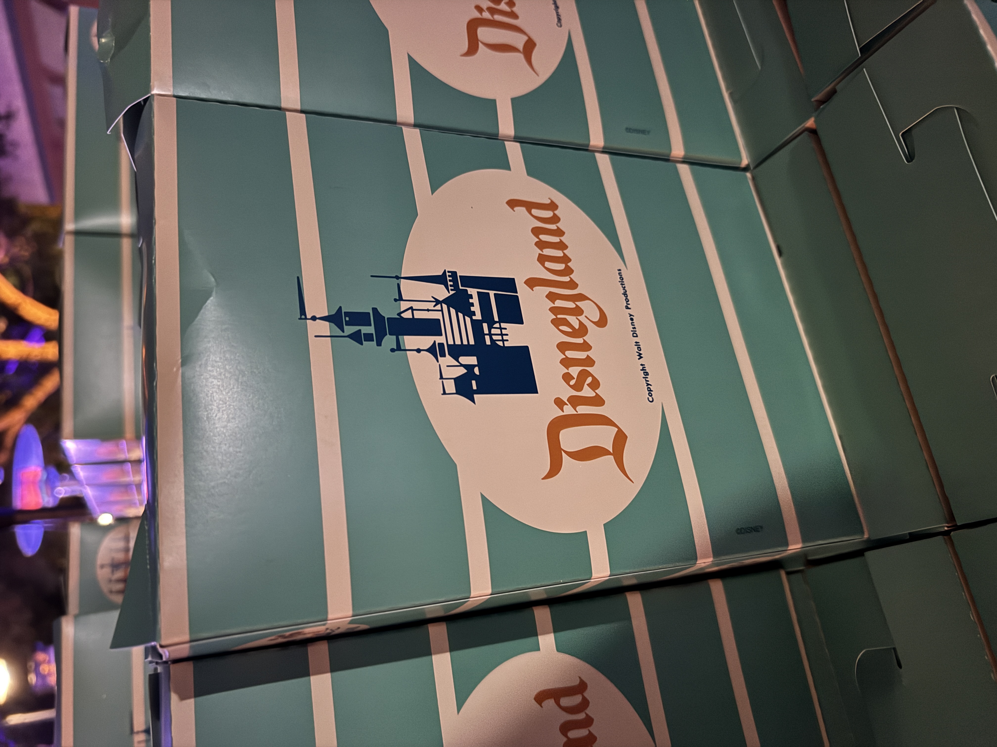 Appropriately, popcorn was served in boxes using a vintage Disneyland design.